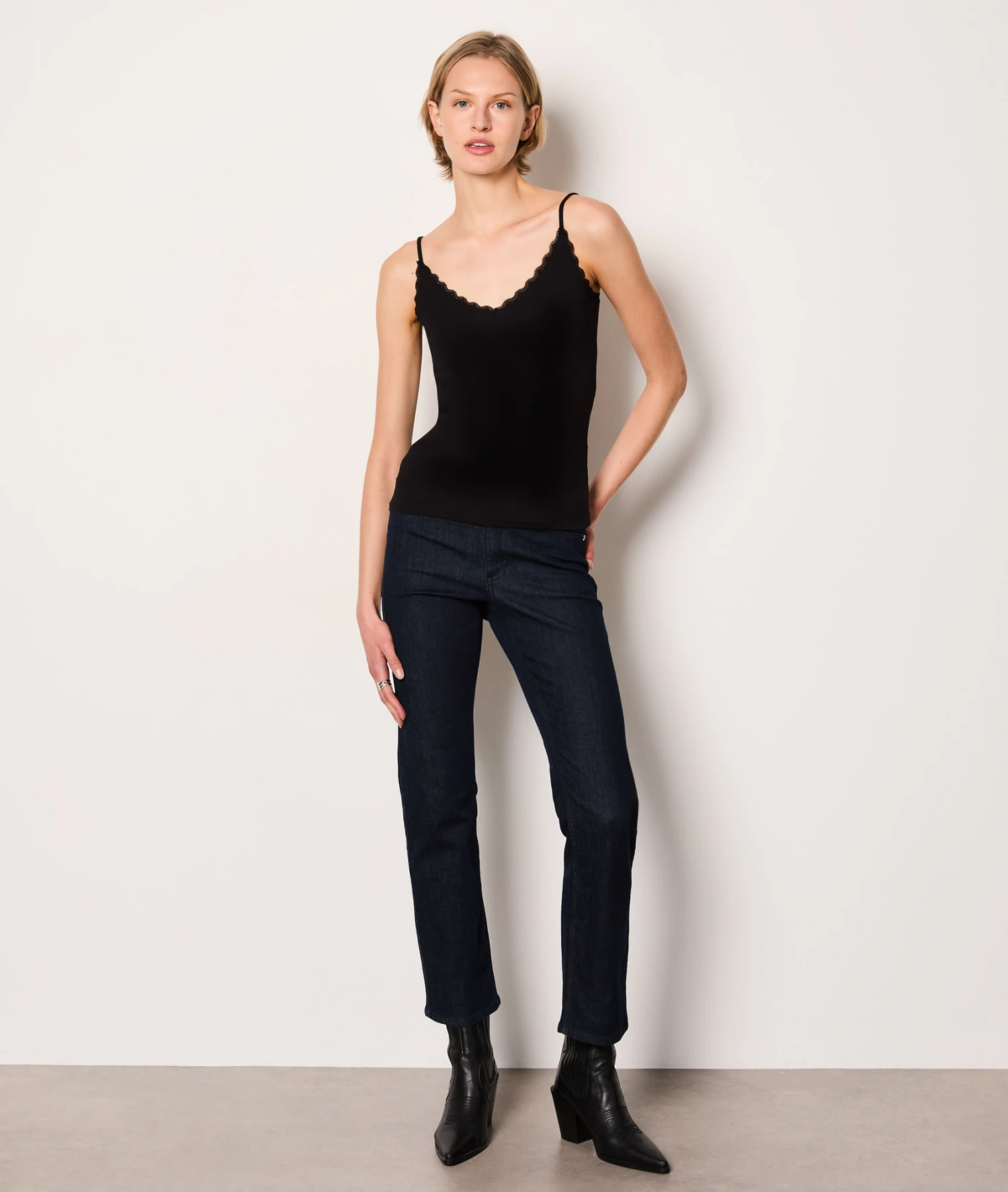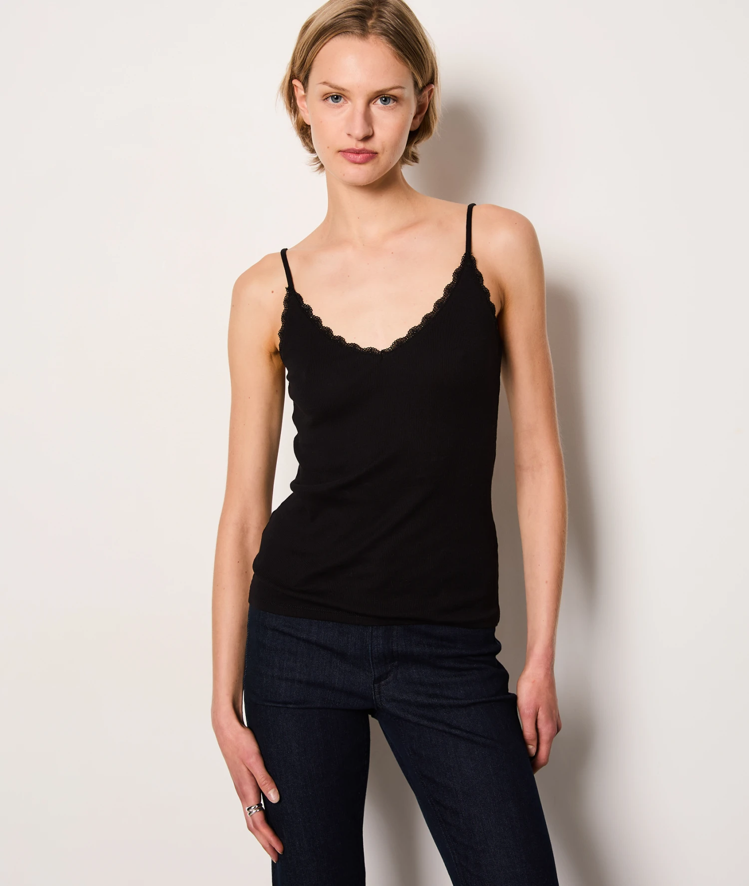 Délicatement côtelé et orné d’une fine bande de dentelle, ce caraco léger est un incontournable du vestiaire. Sous une maille l’hiver, ou simplement glissé dans un short en jean l’été, il se coordonne à tout et dévoile un joli décolleté.