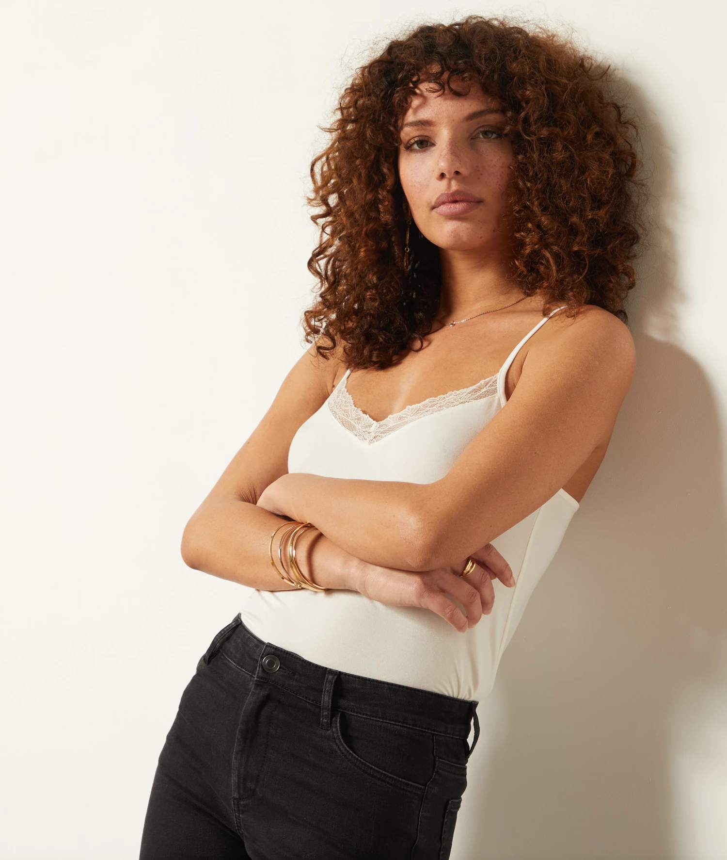 Véritable incontournable de la saison : ce caraco en maille fine suit les courbes du corps et se glisse sous un gilet ou un blazer oversize pour jouer sur les contrastes.