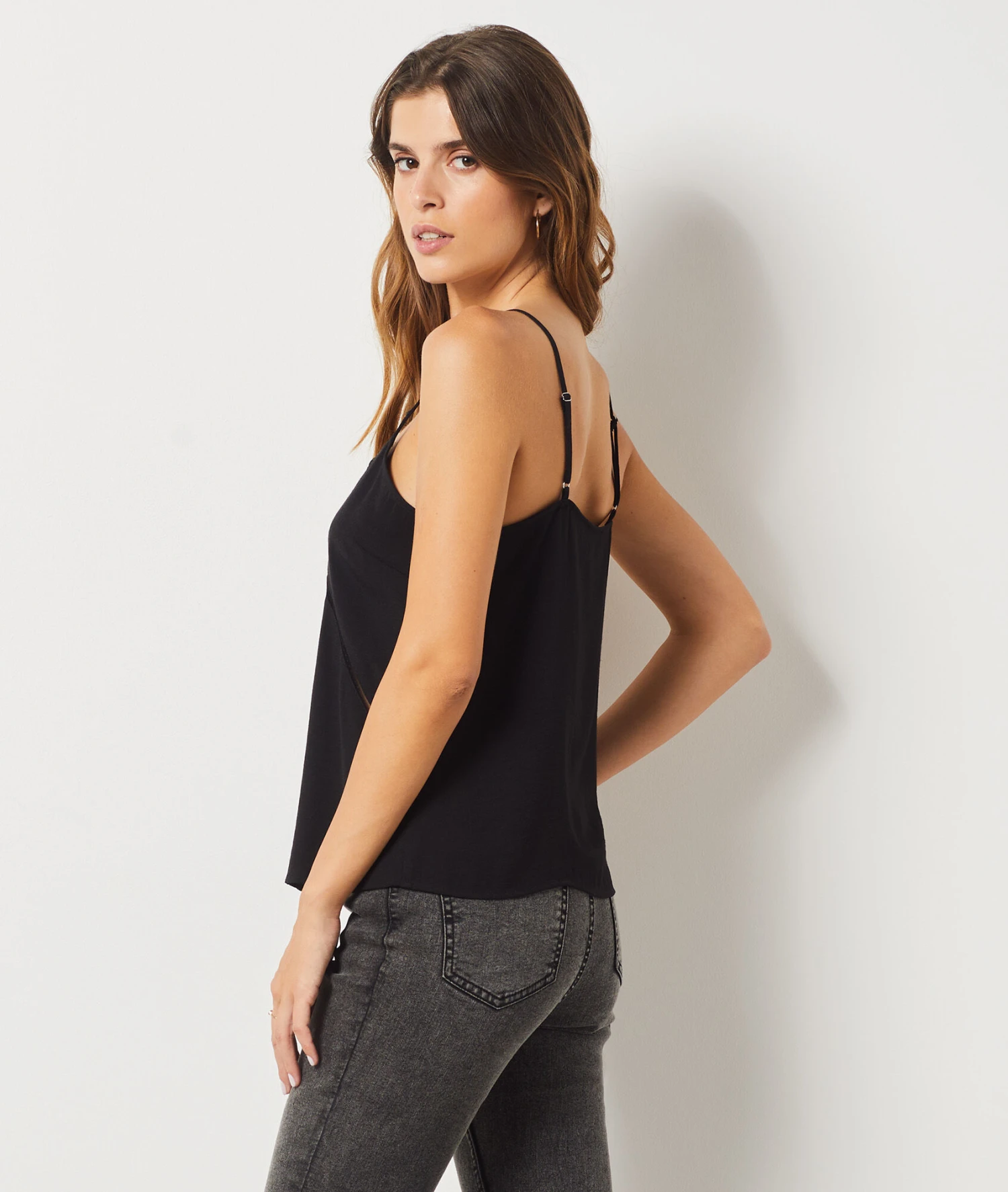 Délicatement bordé de dentelle, ce caraco léger se glisse sous une maille l’hiver, et se porte seul l’été. Un incontournable, toutes saisons confondues !