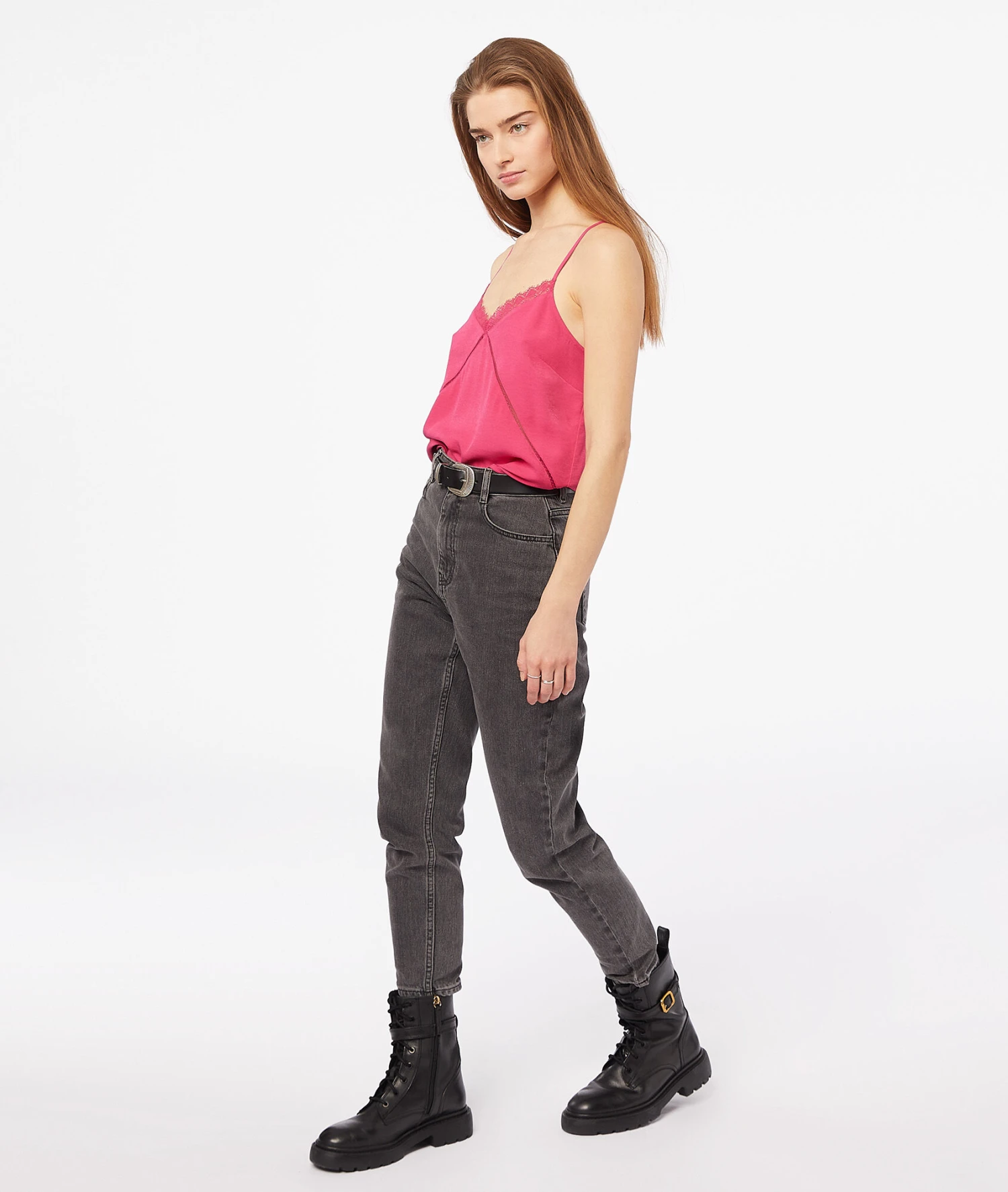Délicatement bordé de dentelle, ce caraco léger se glisse sous une maille l’hiver, et se porte seul l’été. Un incontournable, toutes saisons confondues !
