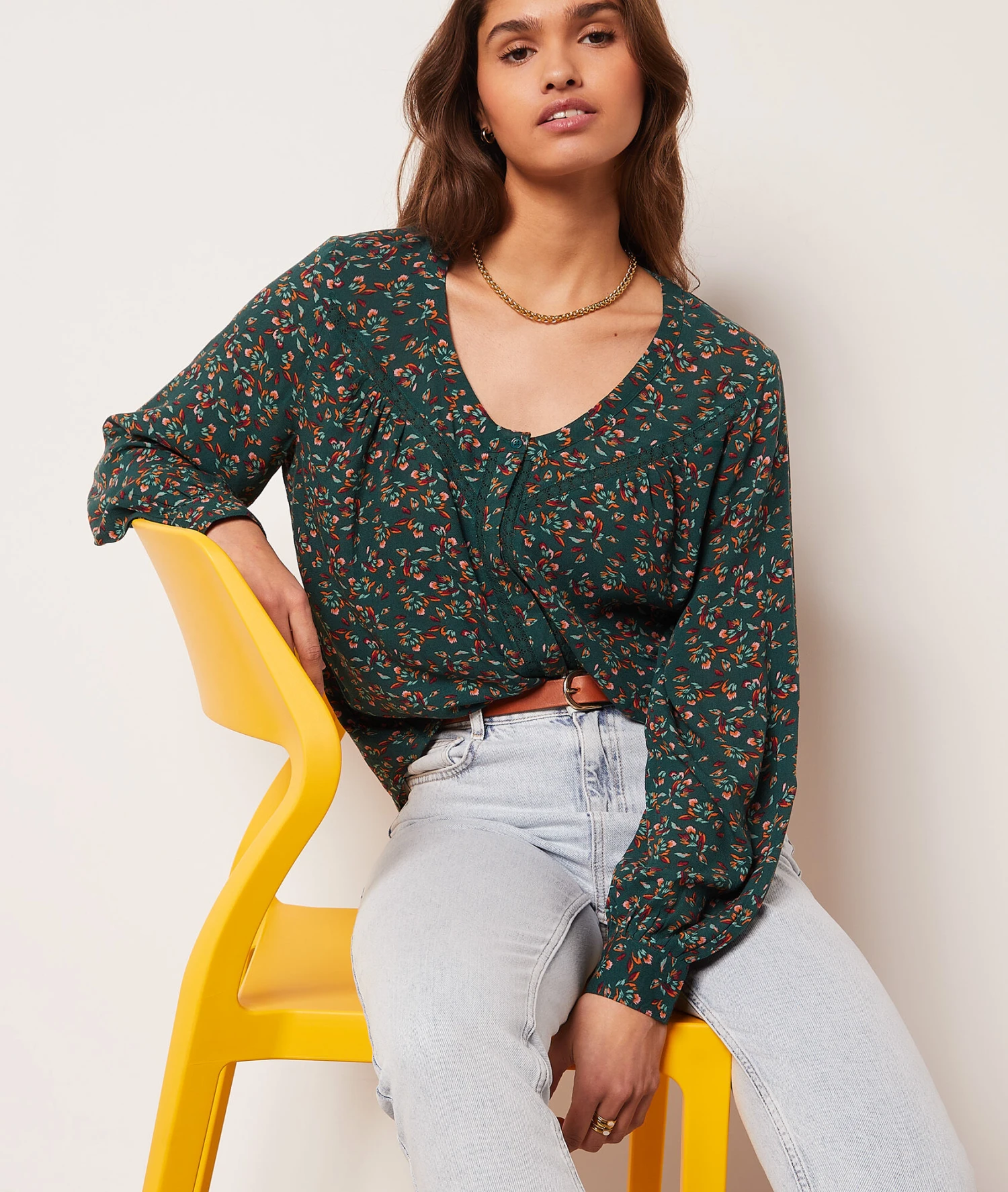 Adoptez cette blouse fleurie dès la mi-saison pour des looks légers et romantiques. Avec son encolure ronde et ses manches longues, elle se coordonne à votre denim favori comme à une jupe courte à volants.