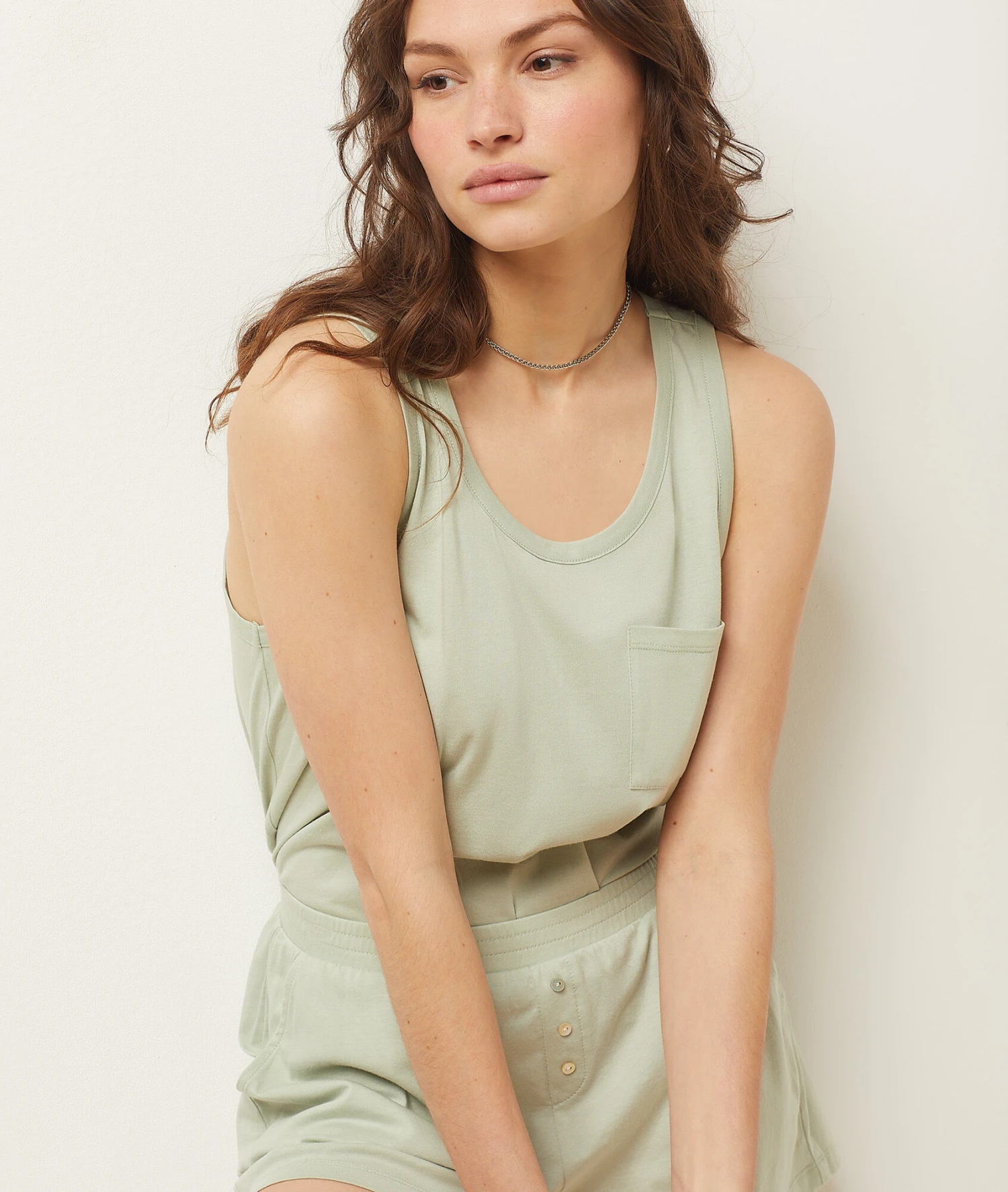 Ce débardeur à col rond est un essentiel à avoir dans sa garde-robe de nuit. Il s’associe facilement avec tous les bas de pyjama pour un outfit de nuit léger et confortable.