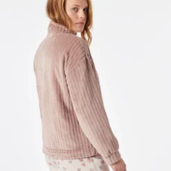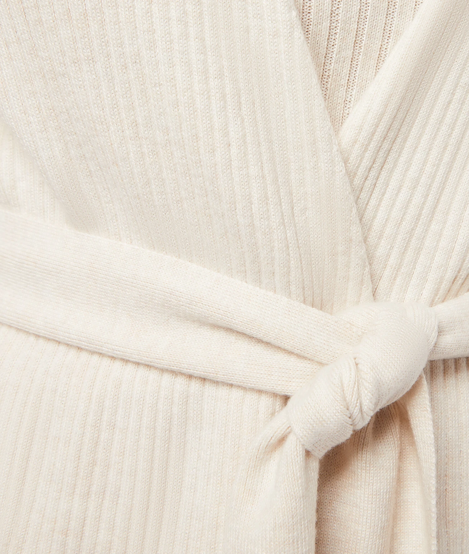 Délicatement côtelé, ce cache-cœur à manches longues muni d’une ceinture à nouer est parfait pour cocooner et passer une douce journée.
