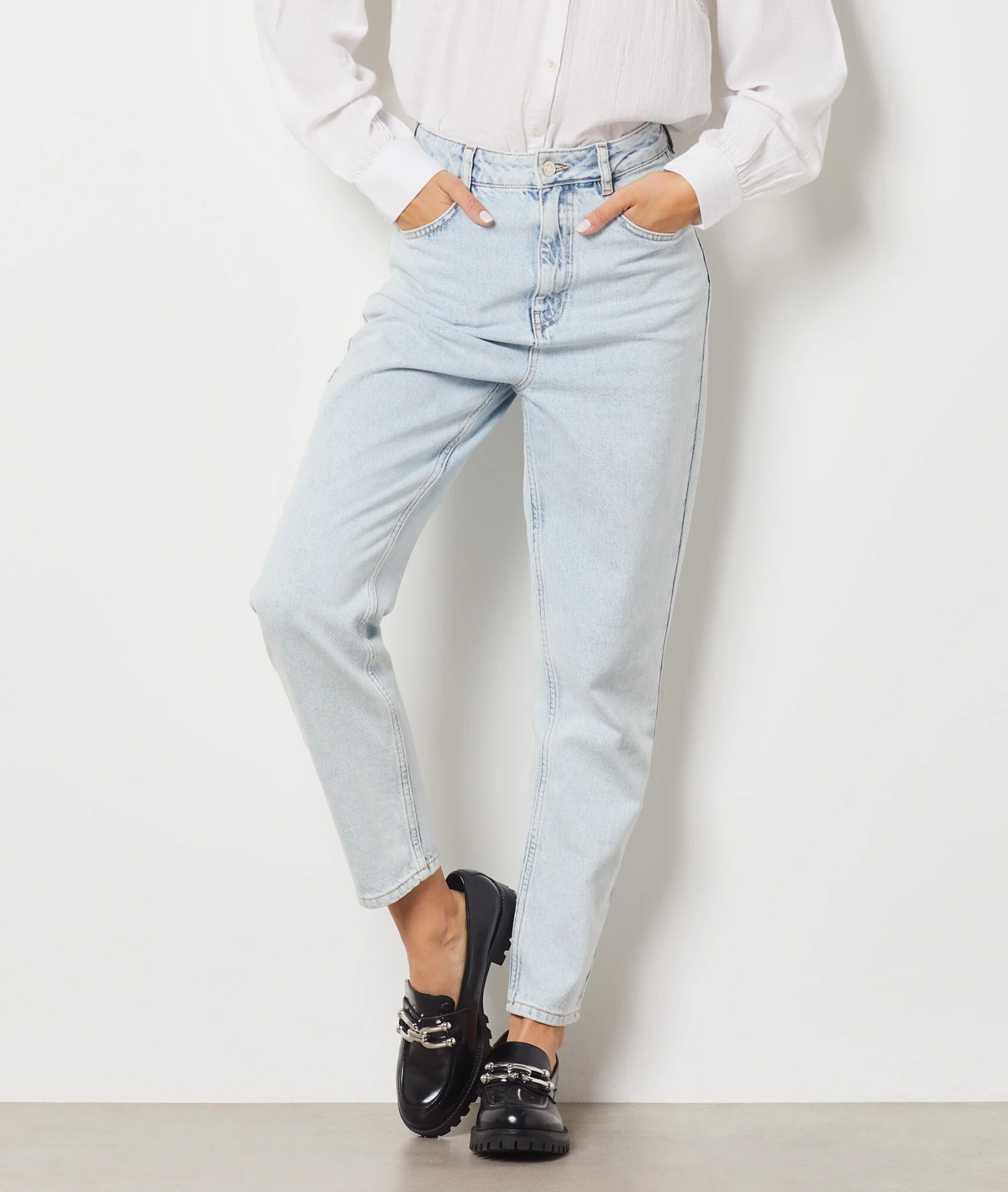 Confectionné en coton, ce jean mom incontournable du vestiaire promet un confort optimal tout au long de la journée et des looks toujours plus tendances.