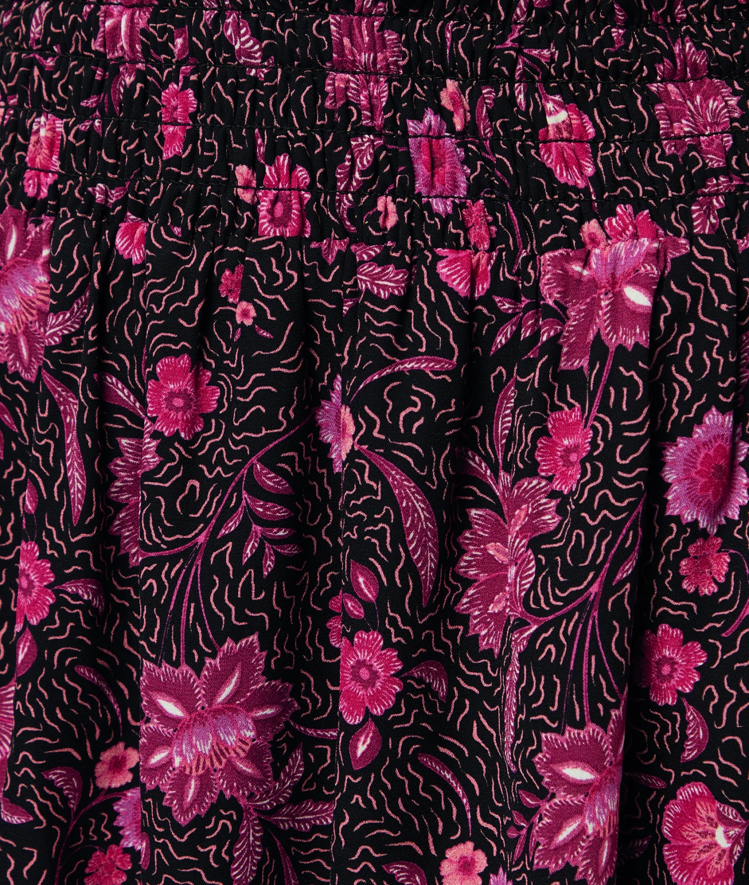 Courte et évasée, cette jupe smockée marquée à la taille, libère le mouvement par sa légèreté. A porter avec des bottes, un chemisier et un petit manteau court pour un look sophistiqué.