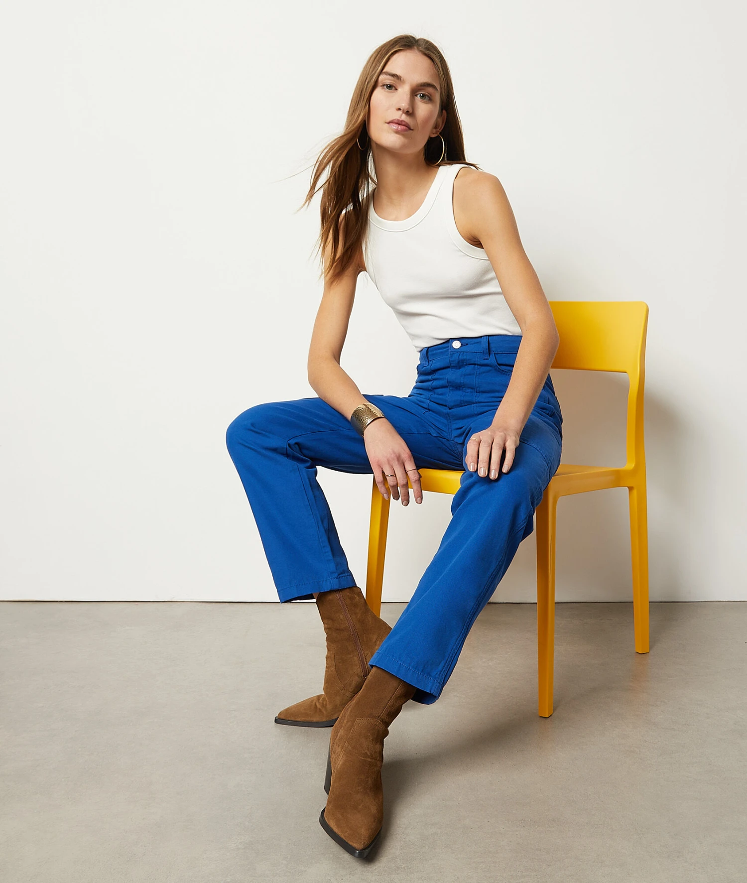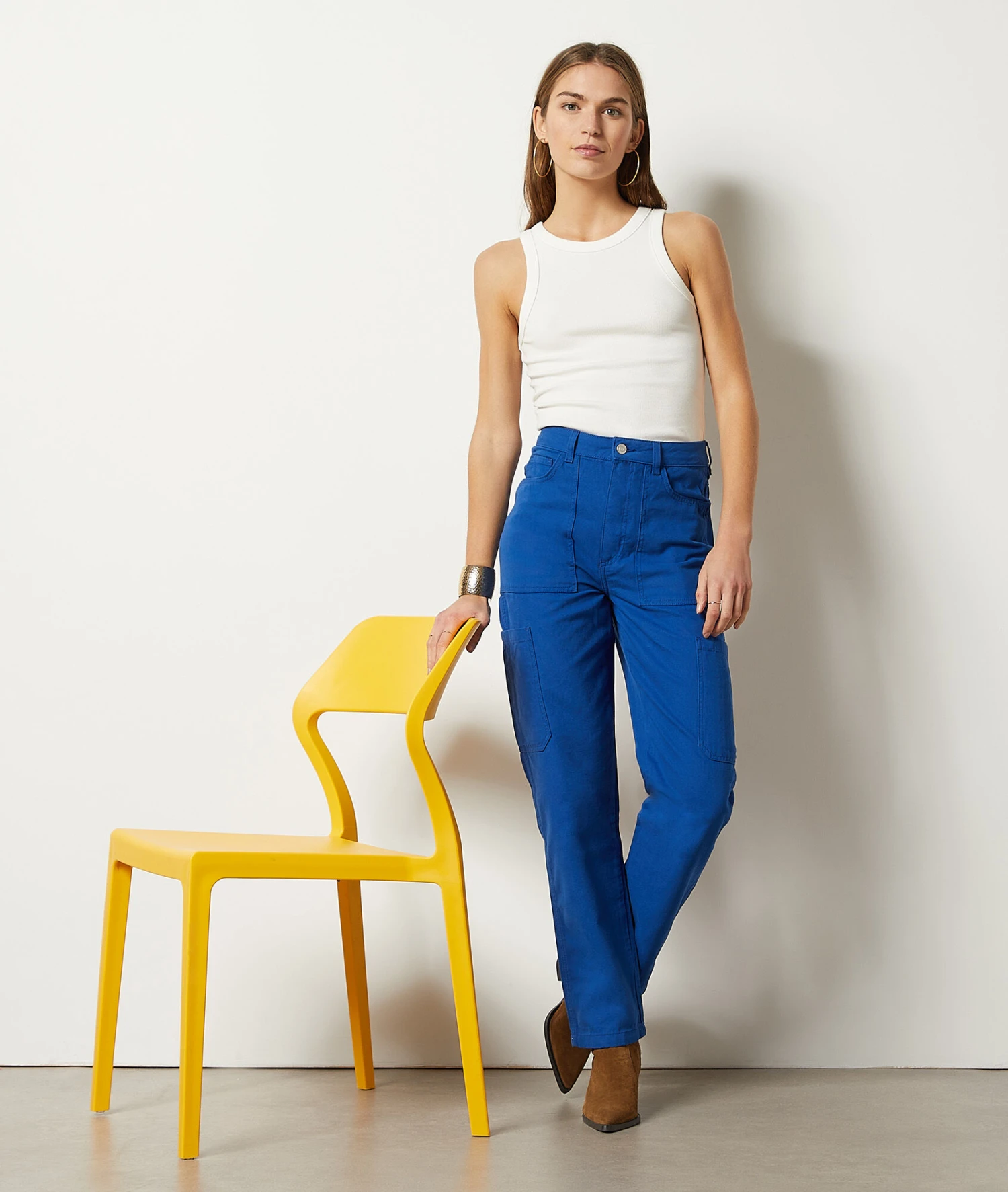 Le jean cargo fait son grand retour pour un look tendance et décontracté. Avec sa coupe large et flare, il dévoile des poches sur les côtés.