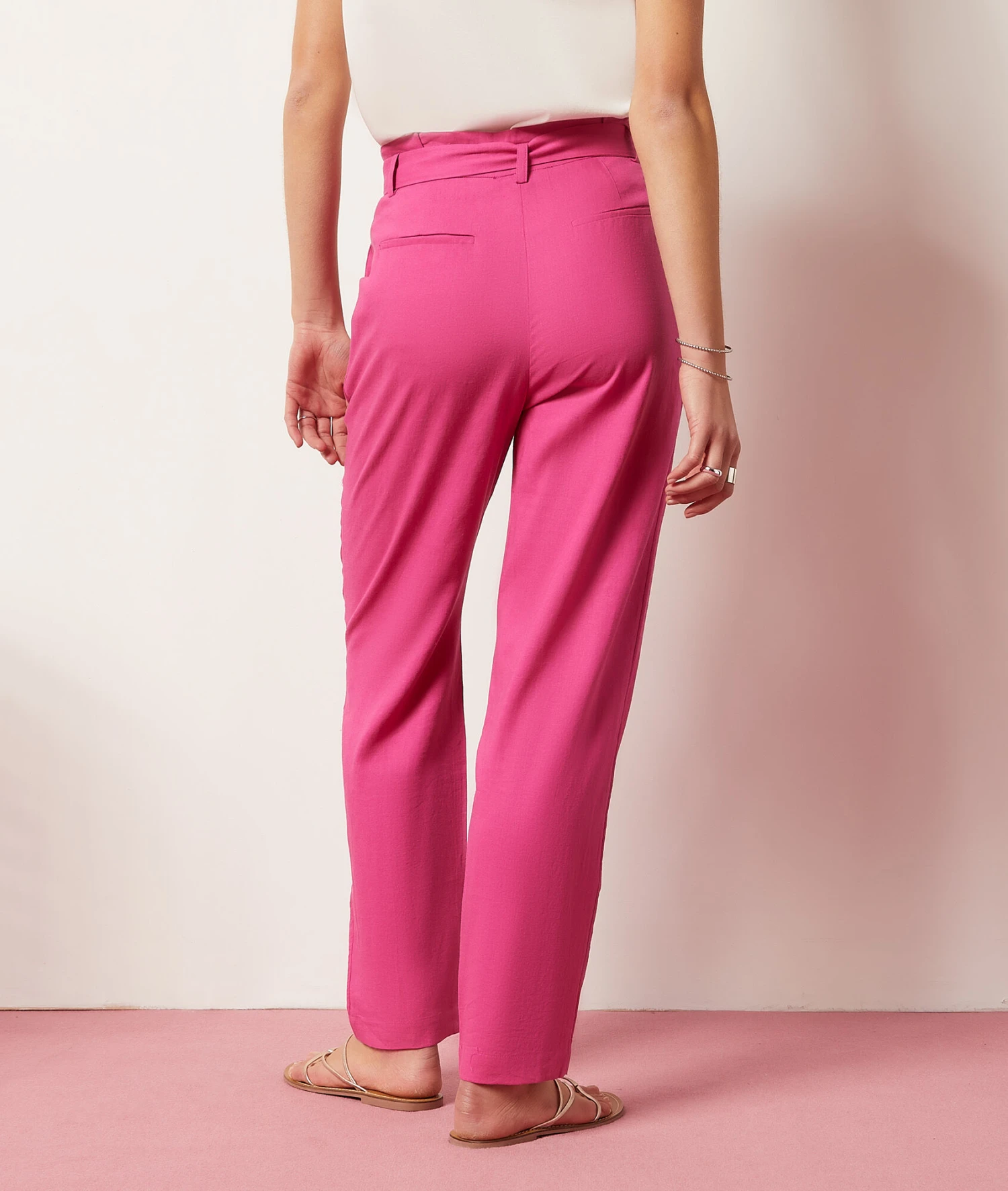 Un indispensable de la garde-robe workwear, ce pantalon dévoile une coupe cigarette tendance. Muni d’une ceinture à grosse boucle, il marque la taille pour une silhouette sublime.