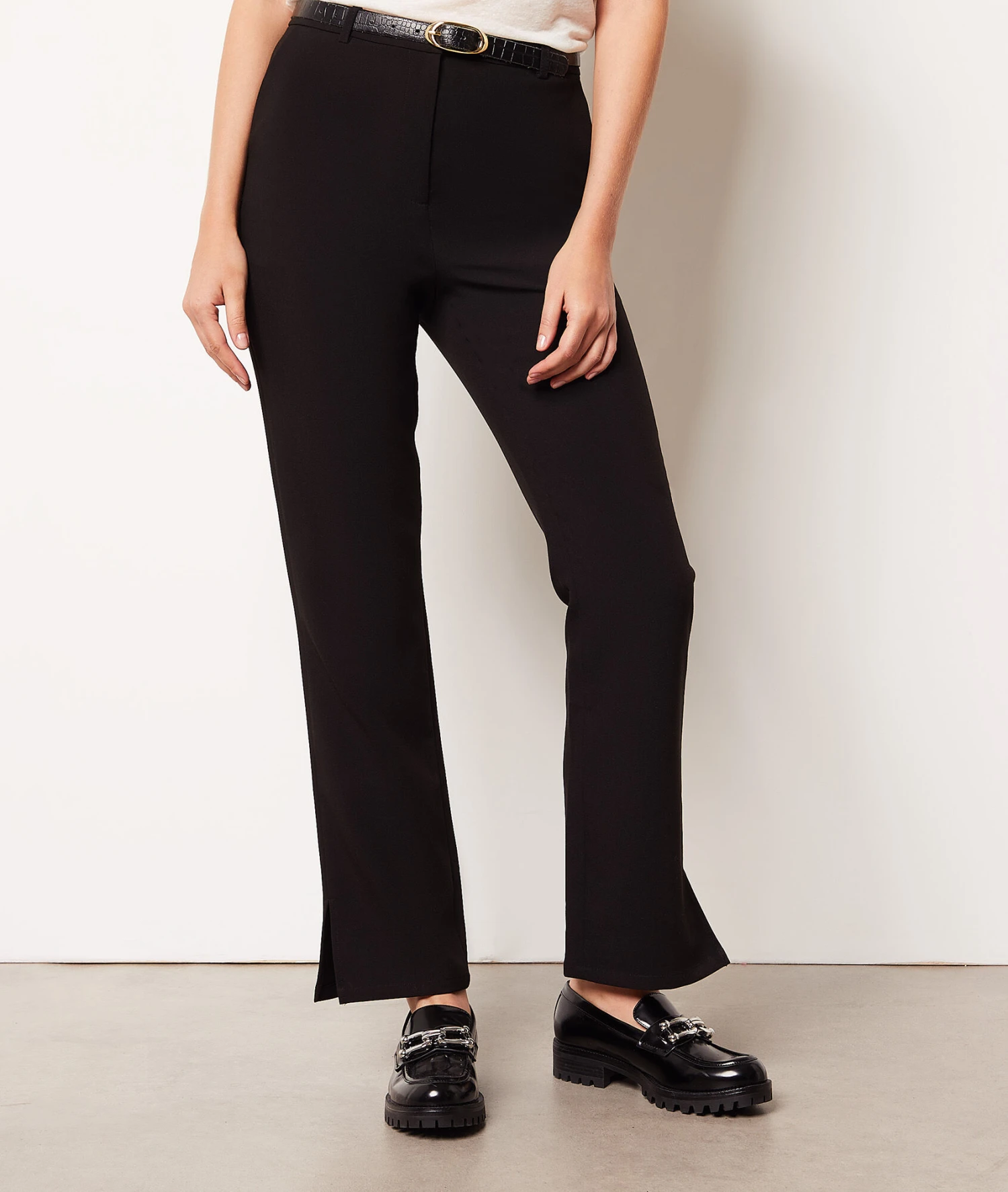 L’incontournable pantalon noir revisité pour la saison avec une coupe droite et des fentes aux chevilles. Avec une veste coordonnée, ou un sweat molletonné, il se coordonne à tous vos looks.