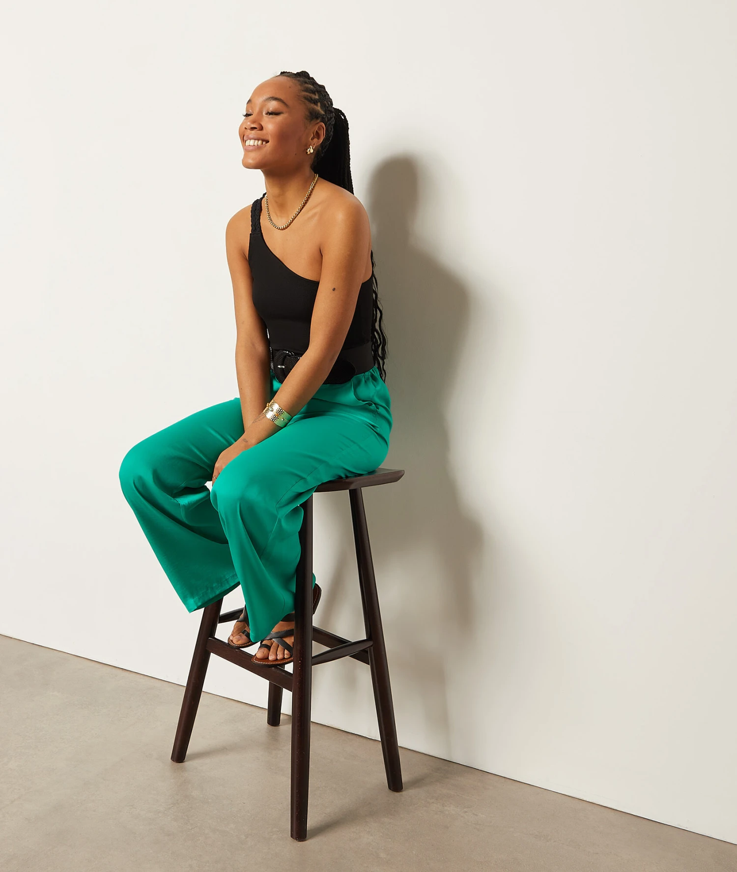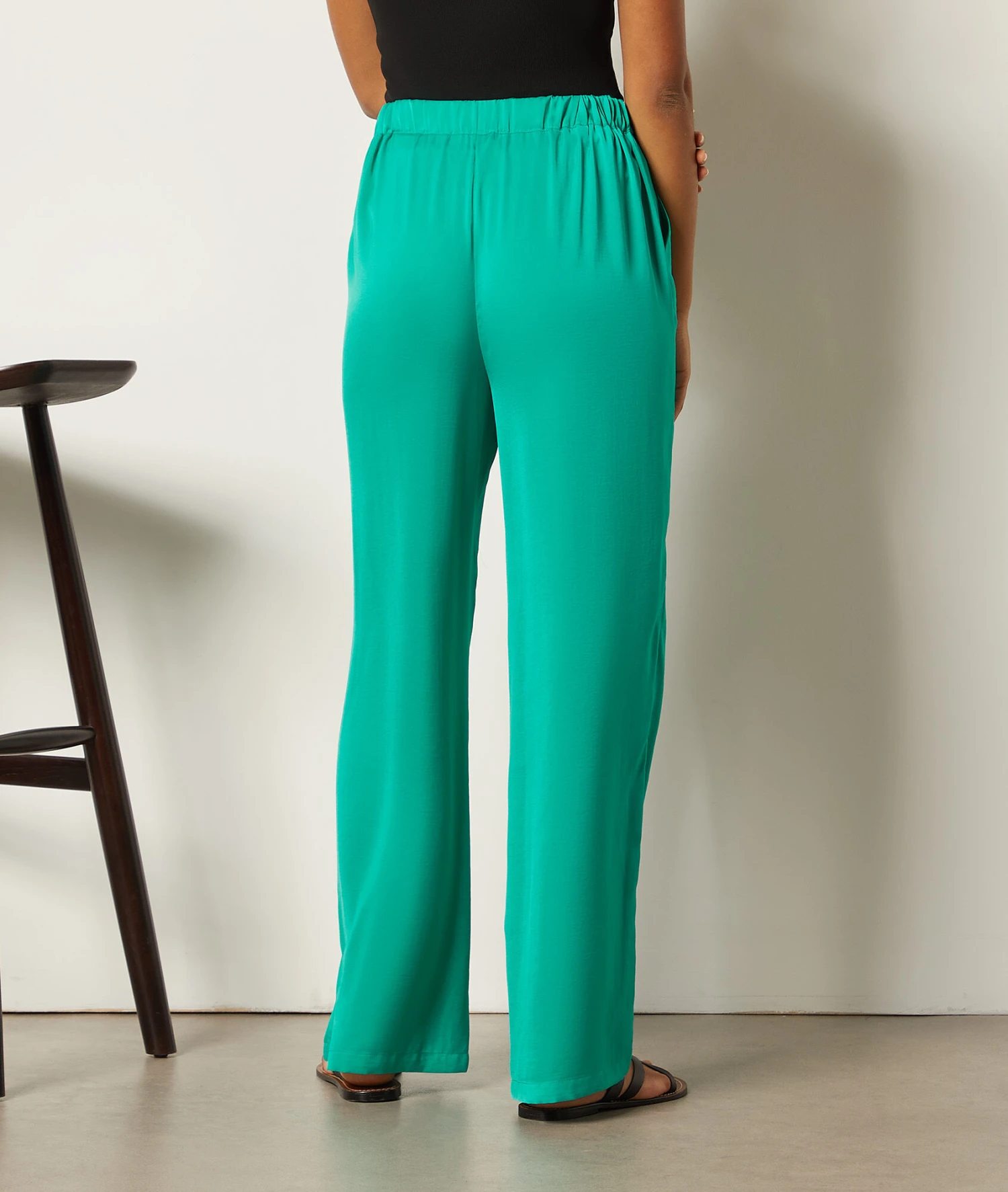 Fluide et léger, ce pantalon taille haute est muni d’une ceinture élastiquée et de poches sur les côtés. Misez sur un total look vert avec une blouse imprimée.