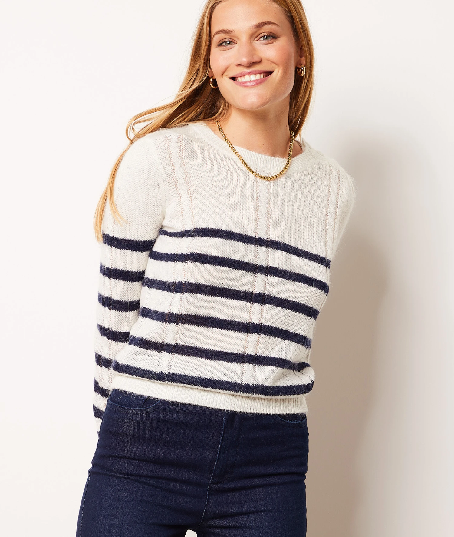 Muni d’un col rond et de manches longues, ce pull en maille est orné de détails ajourés, pour un look à la fois élégant et féminin. Un véritable incontournable du vestiaire pour réchauffer ses looks.