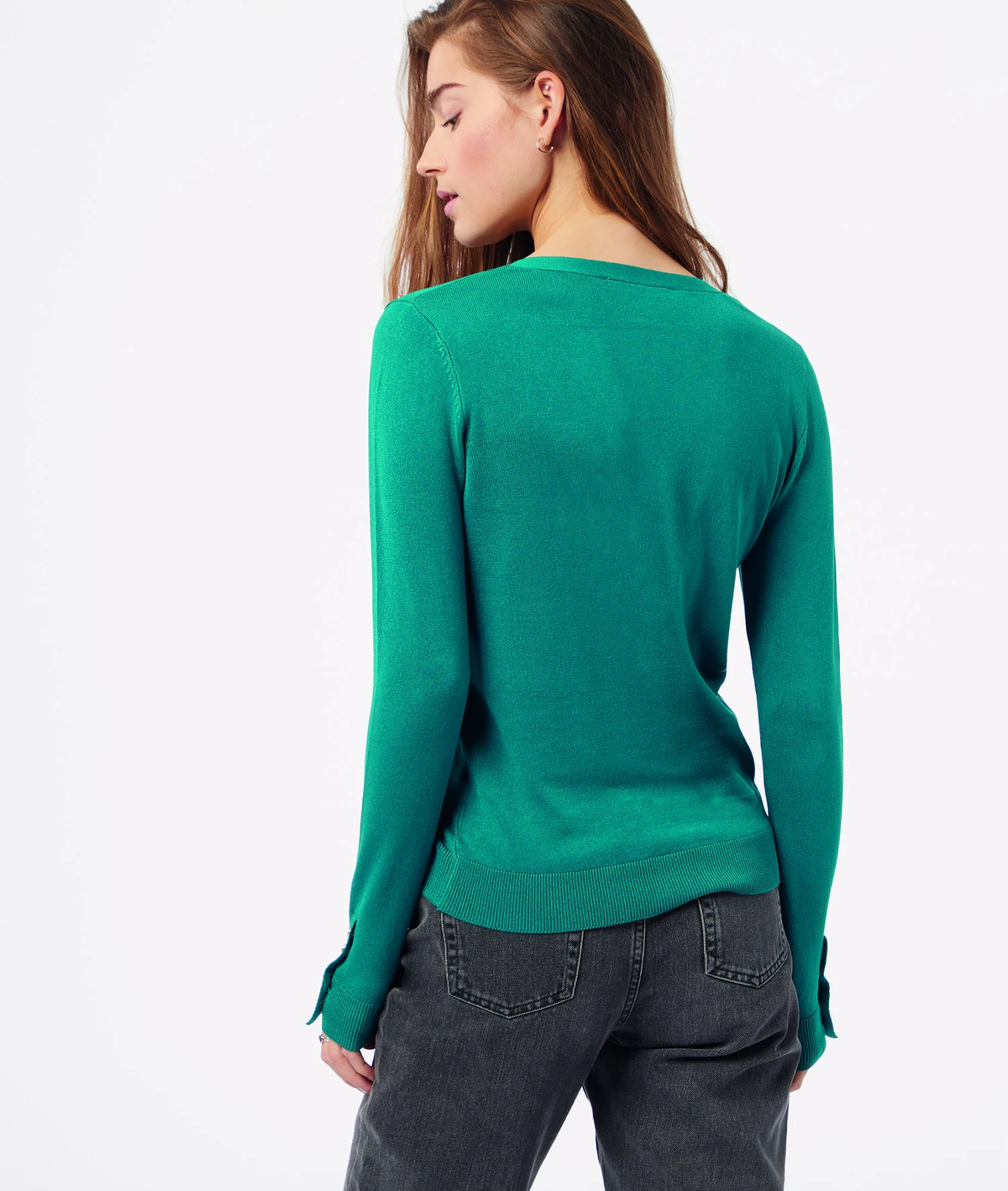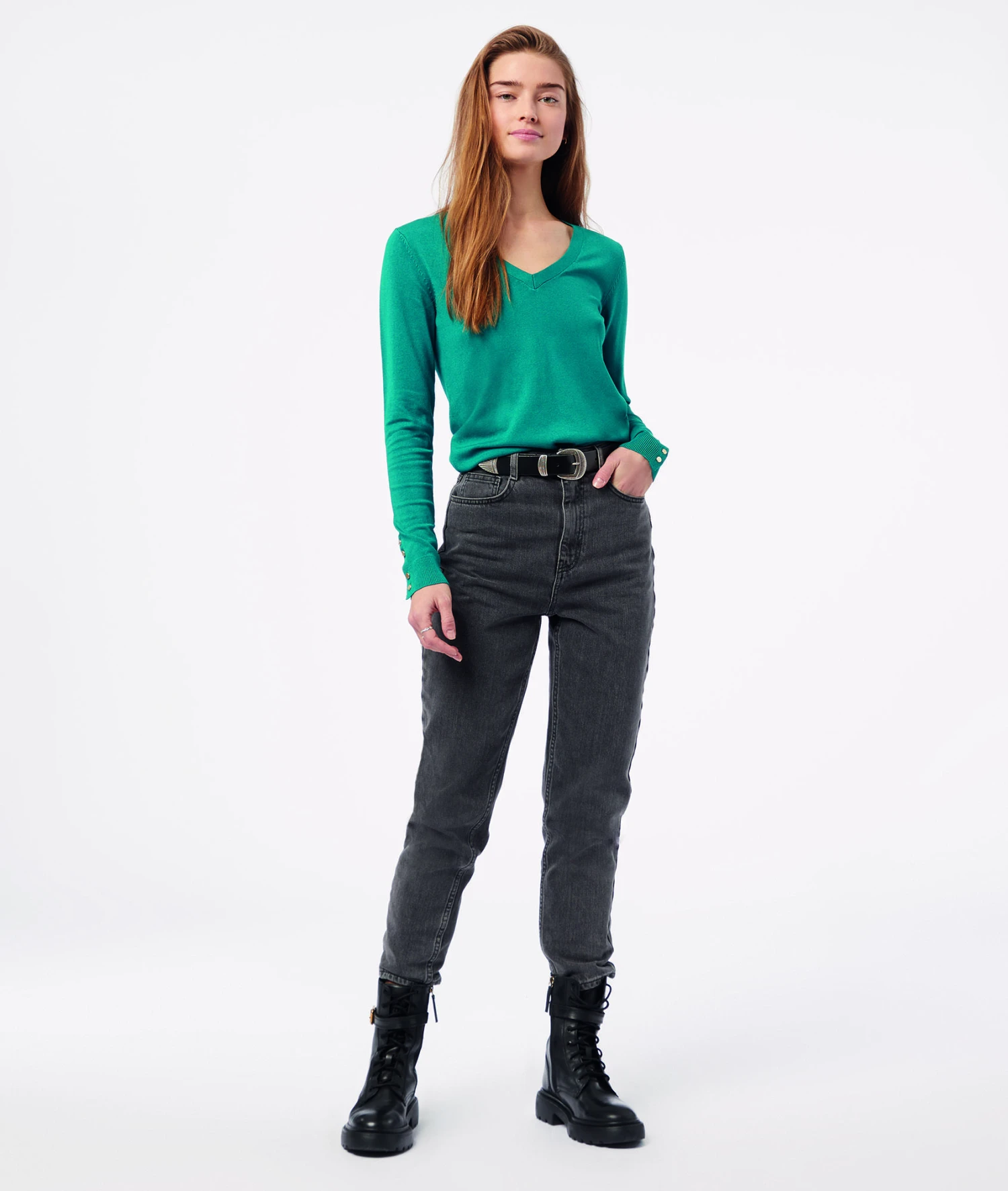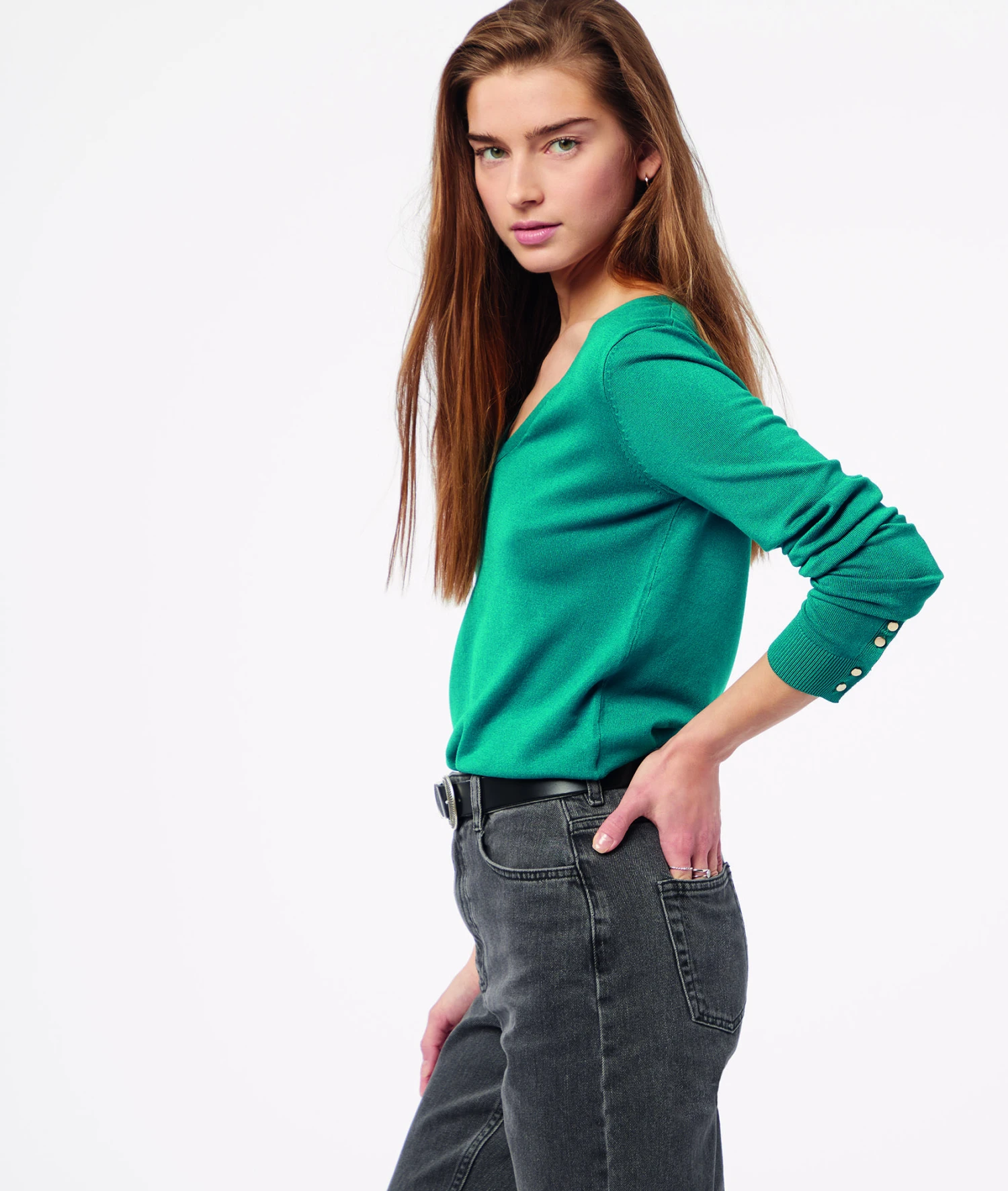 Une maille fine et légère : ce pull col V est un basique à compter dans son vestiaire, toutes saisons confondues.