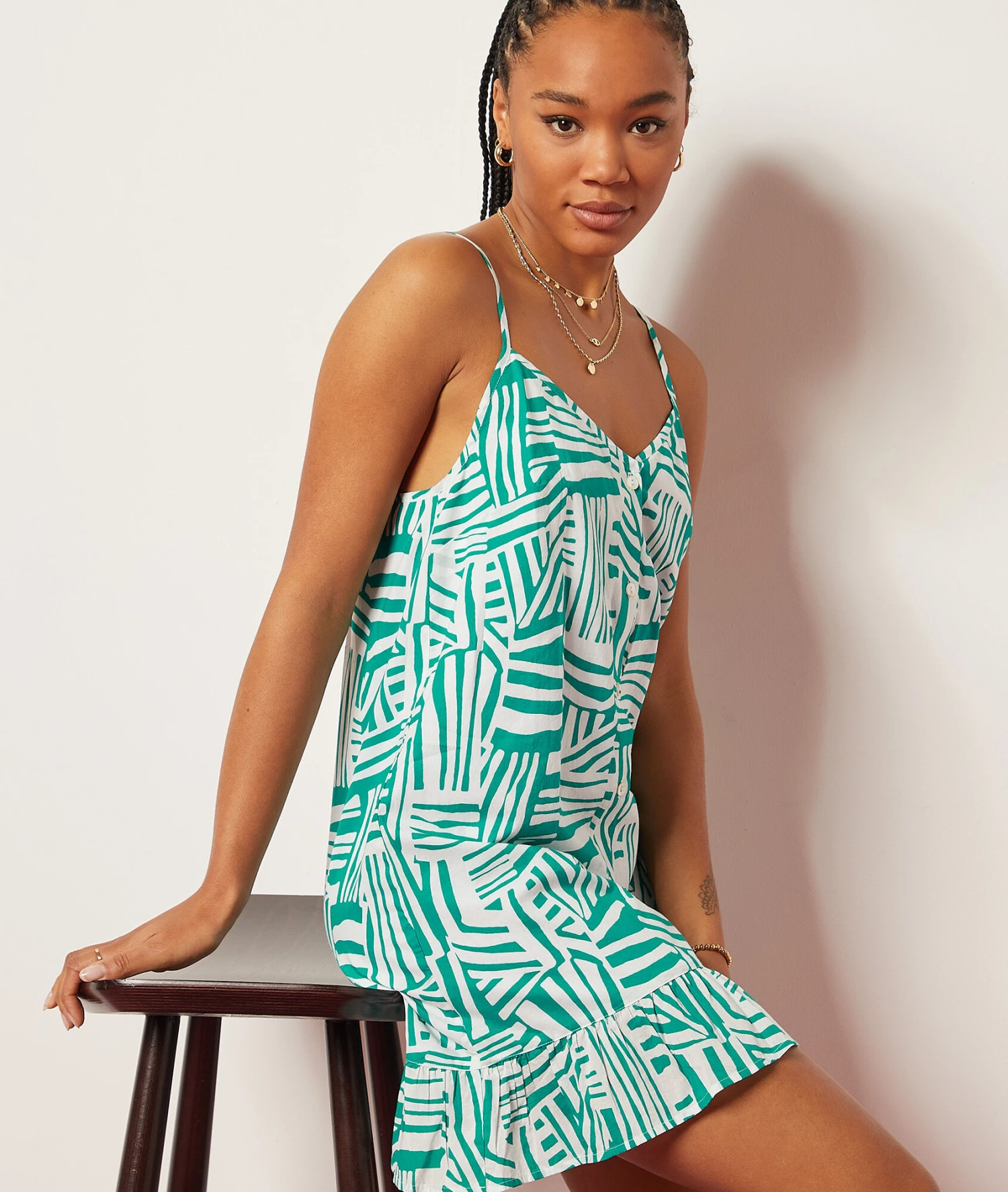 Cette robe en coton imprimée est définitivement à adopter pour l’été ! Munie de bretelles fines, elle dévoile une coupe fluide et volantée ainsi qu’une boutonnière pour des journées estivales ultra légères.