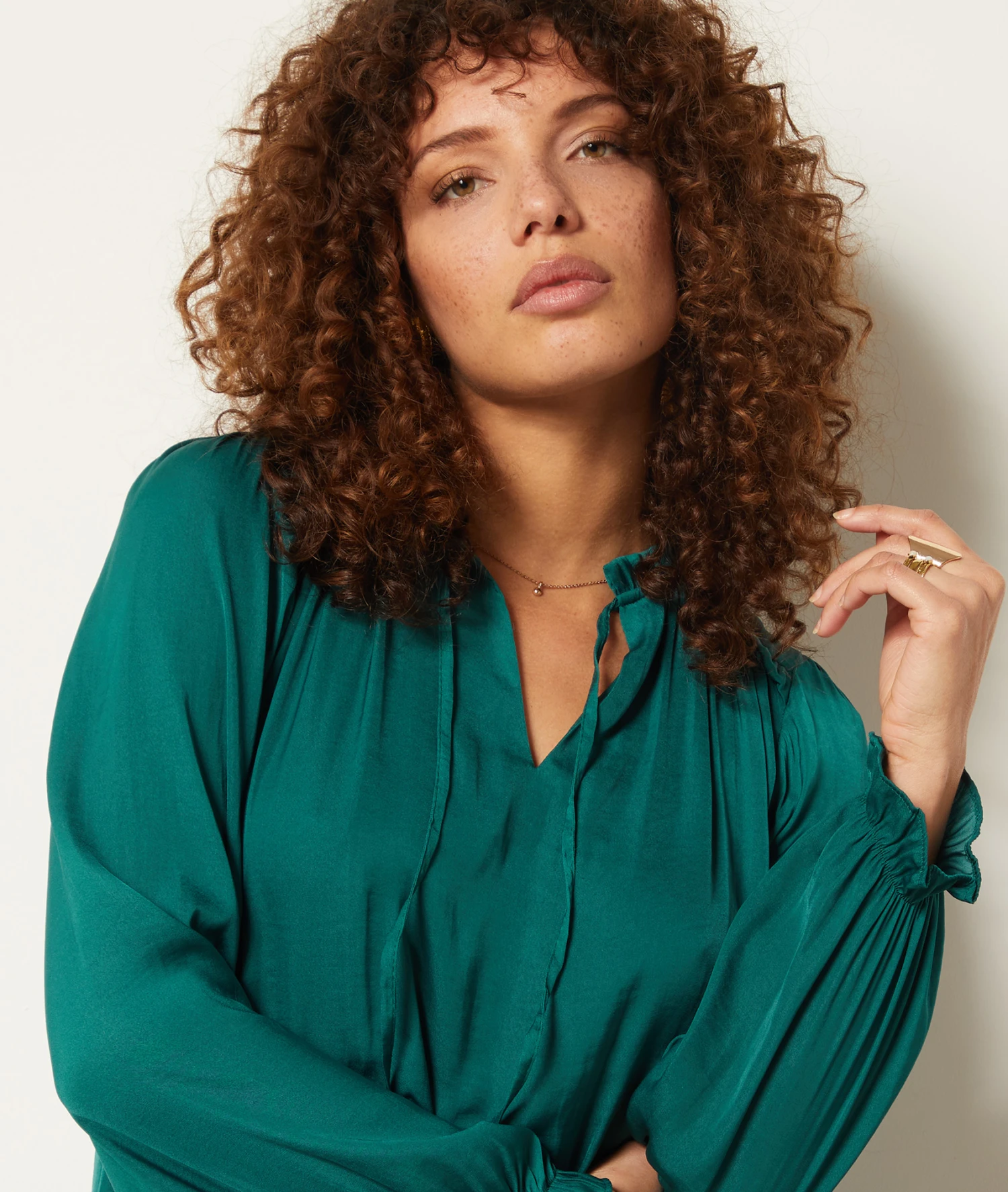 Craquez pour la légèreté de cette robe courte et évasée. Elle dévoile un col V féminin et des manches légèrement bouffantes qui apportent une note romantique.