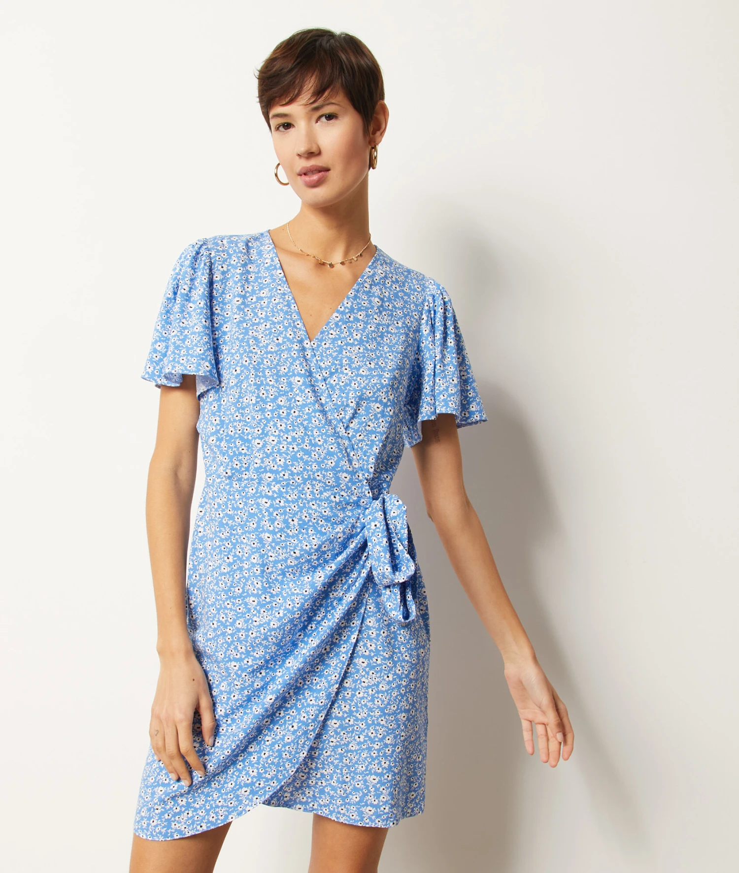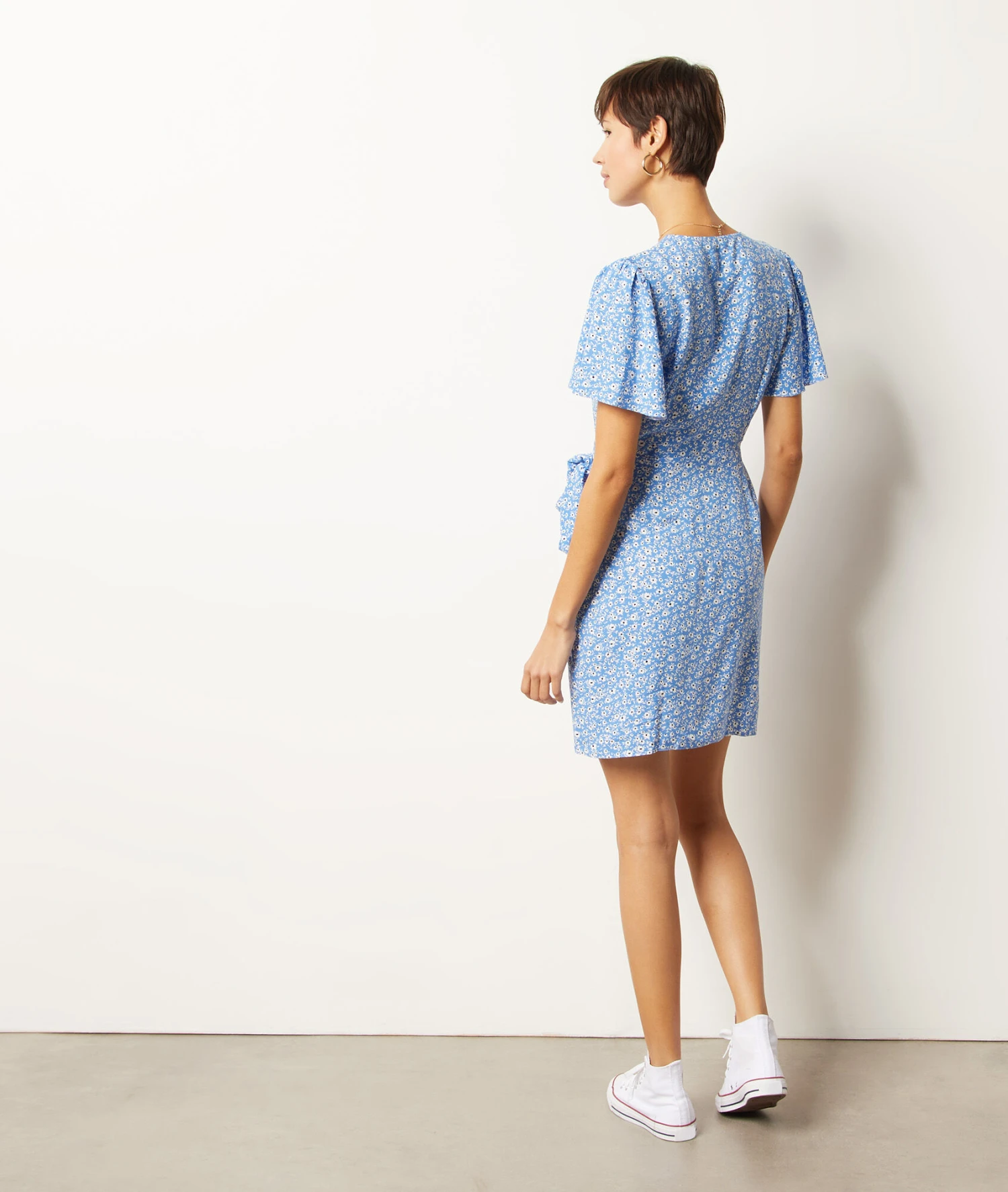 Cette saison, Etam imagine une collection empreinte de douceur et de féminité. Cette robe courte dévoile un décolleté en V délicat, des manches courtes et un motif fleuri d’une grande fraîcheur pour l’arrivée des beaux jours. Dévoilant une coupe portefeuille, elle est munie d’une ceinture à nouer qui dessine la silhouette avec élégance. Associez-la à une paire de baskets pour casser le look et arpenter les ruelles de votre destination ensoleillée de l’été confortablement.