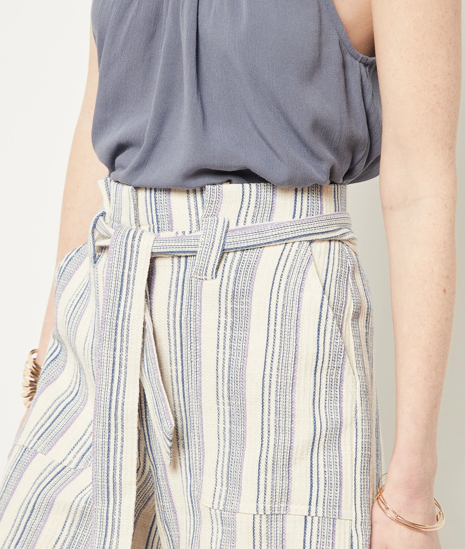 Craquez pour son imprimé rayé intemporel. Ce short taille haute dévoile une coupe droite et une matière très agréable à porter. Associez-le à son kimono pour un total look summer.