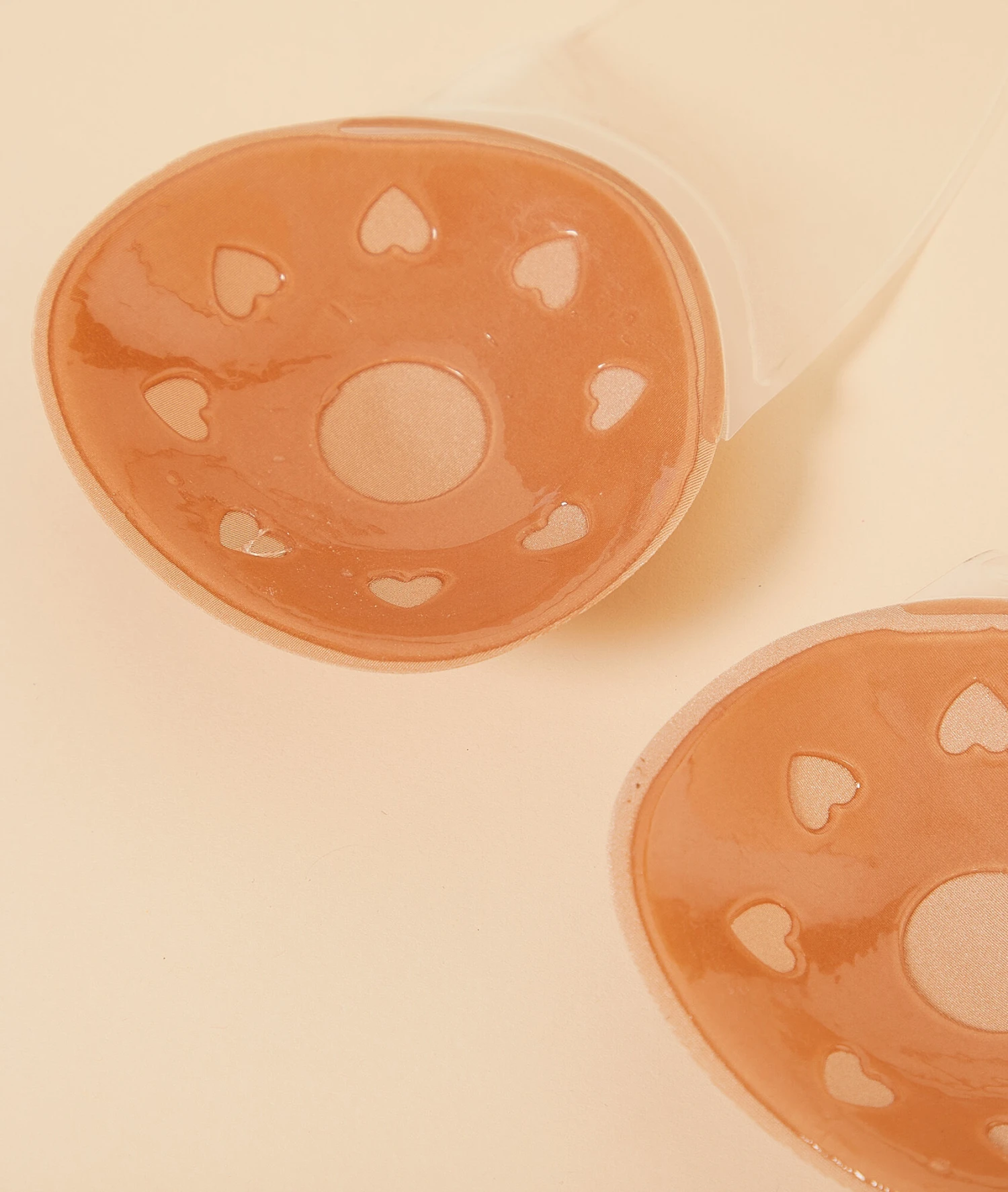 Remontés, les seins affichent un joli décolleté sans soutien-gorge grâce à cette astuce de pro : Des coques adhésives et réutilisables. Le soutien-gorge liftant emboîte la poitrine et se colle sur décolleté :