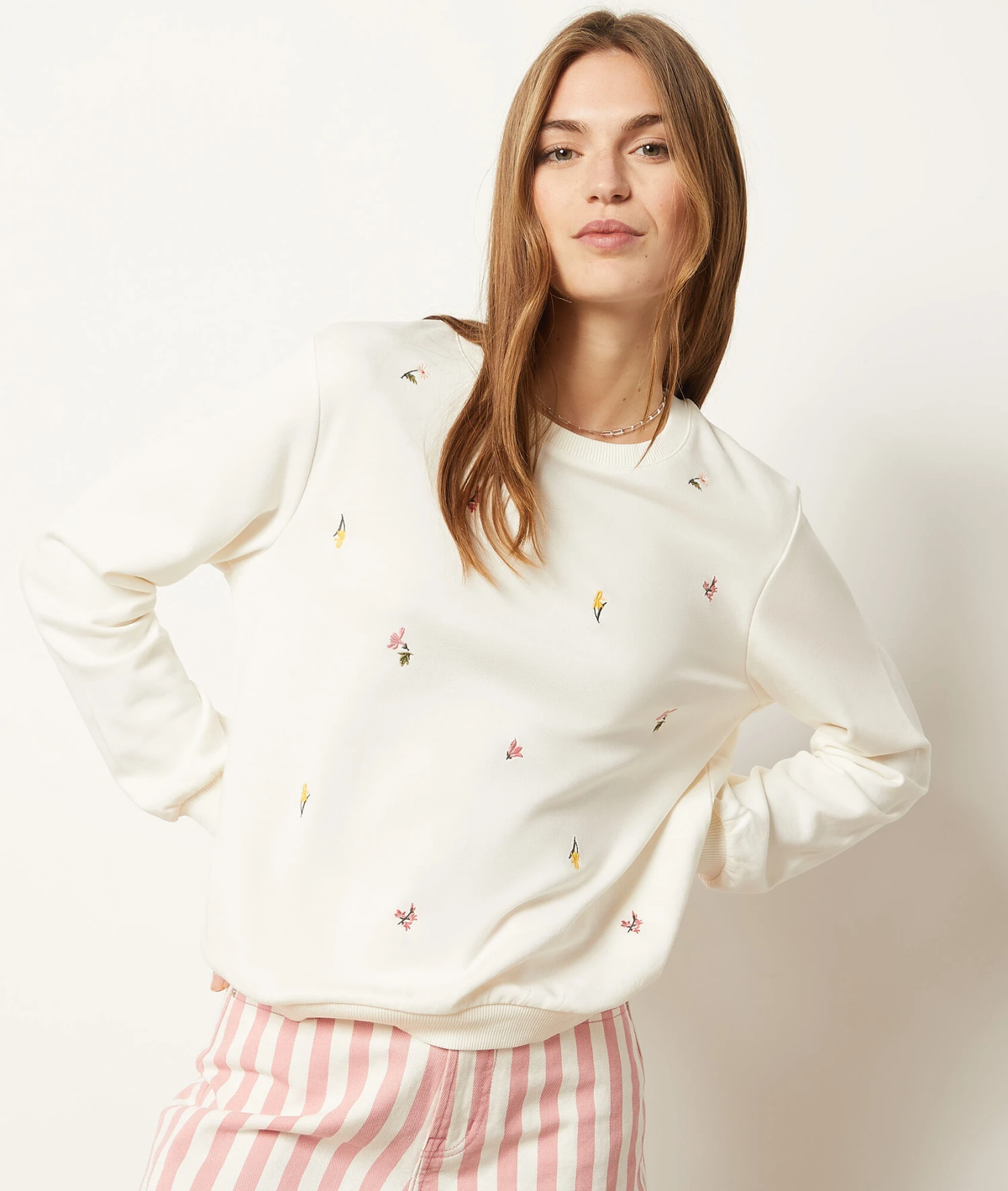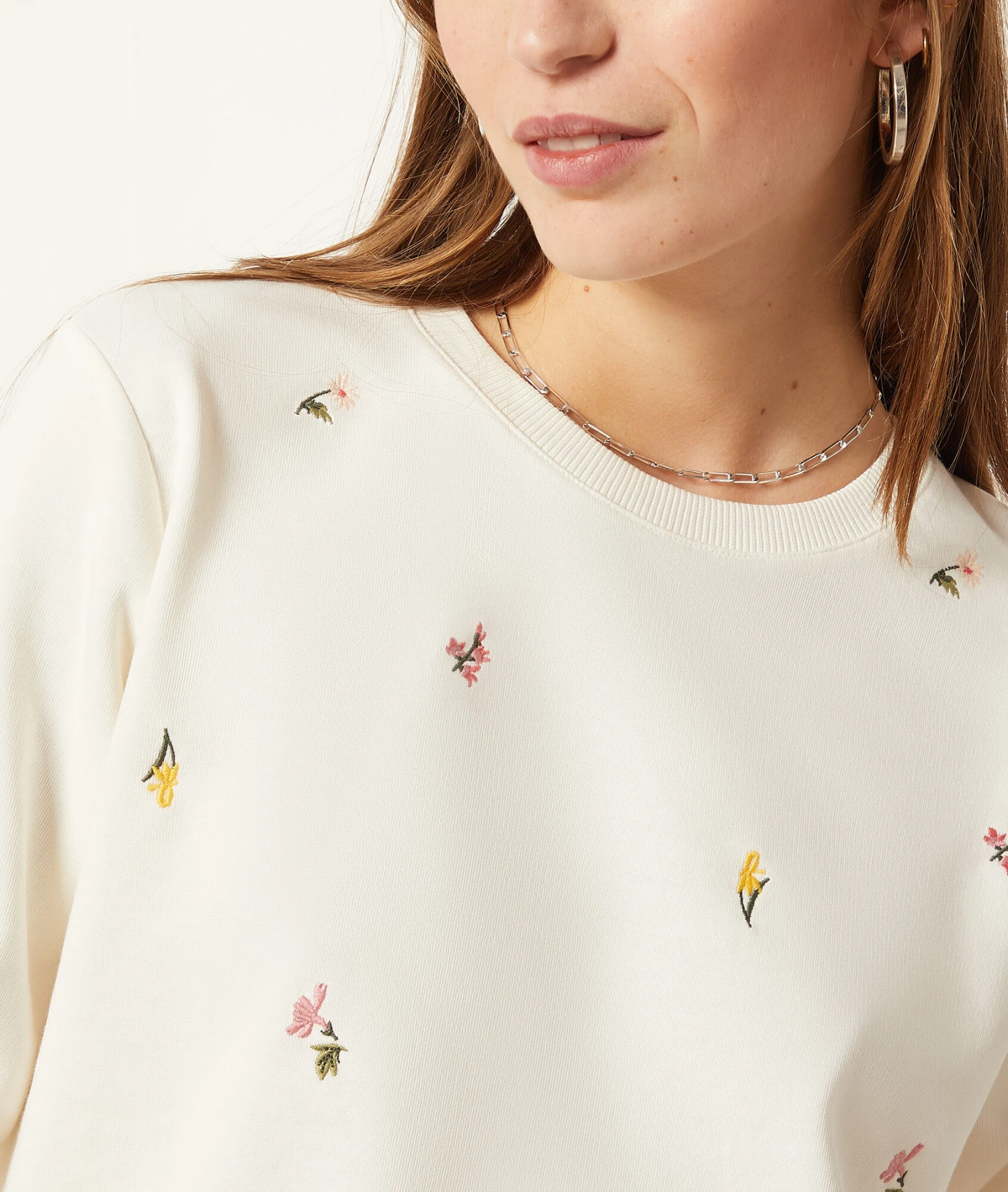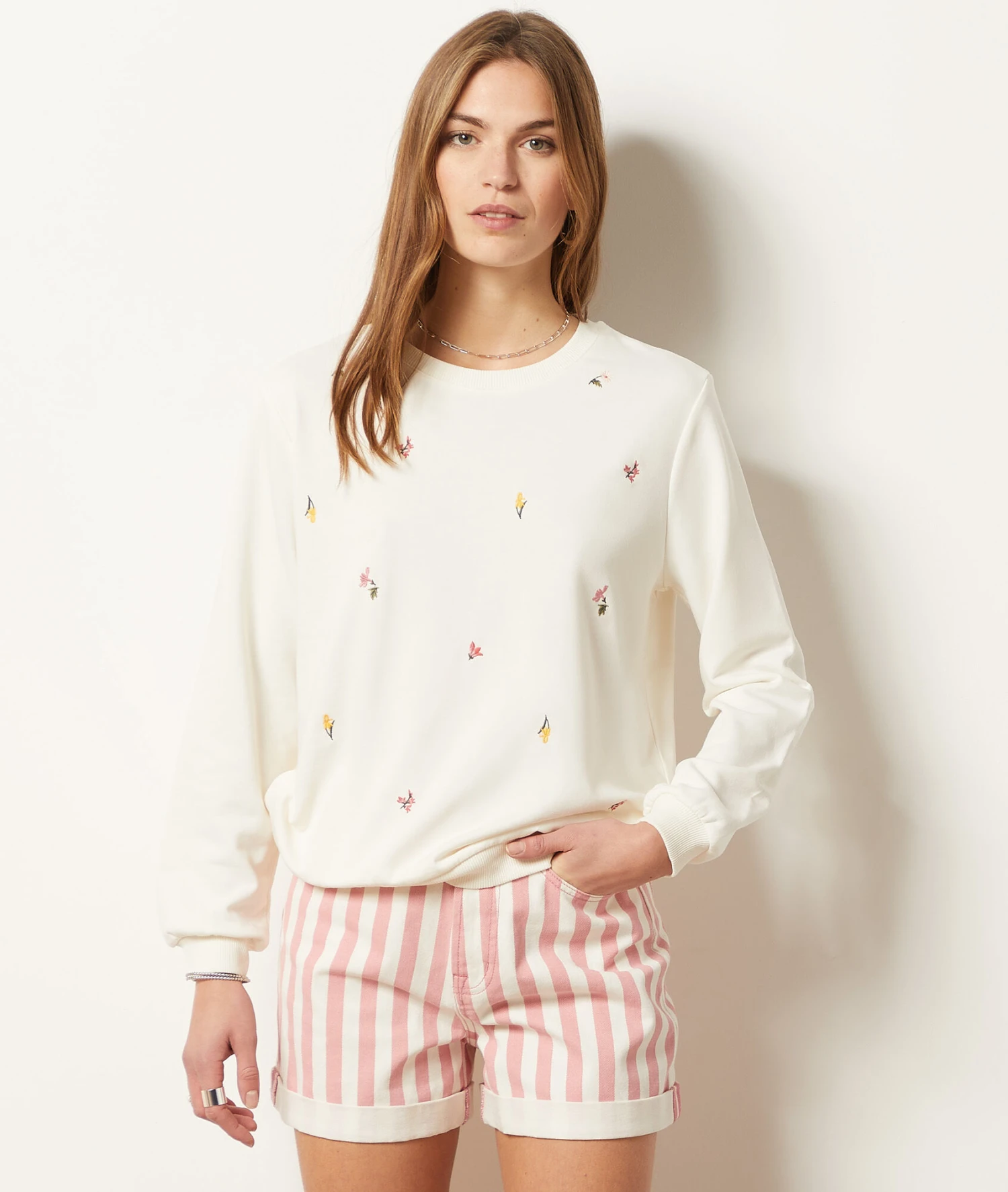 Ce sweatshirt orné de petits motifs floraux annonce les beaux jours. Muni d’un col rond et de manches longues, il est l’indispensable à avoir dans sa garde-robe de mi-saison.