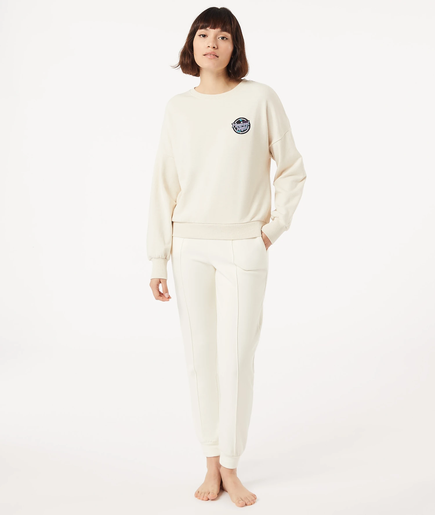Tout doux et trop fun : ce sweat shirt dévoile des broderies des logos phares de cette collection capsule pour agrémenter cet incontournable cosy en pièce unique.
