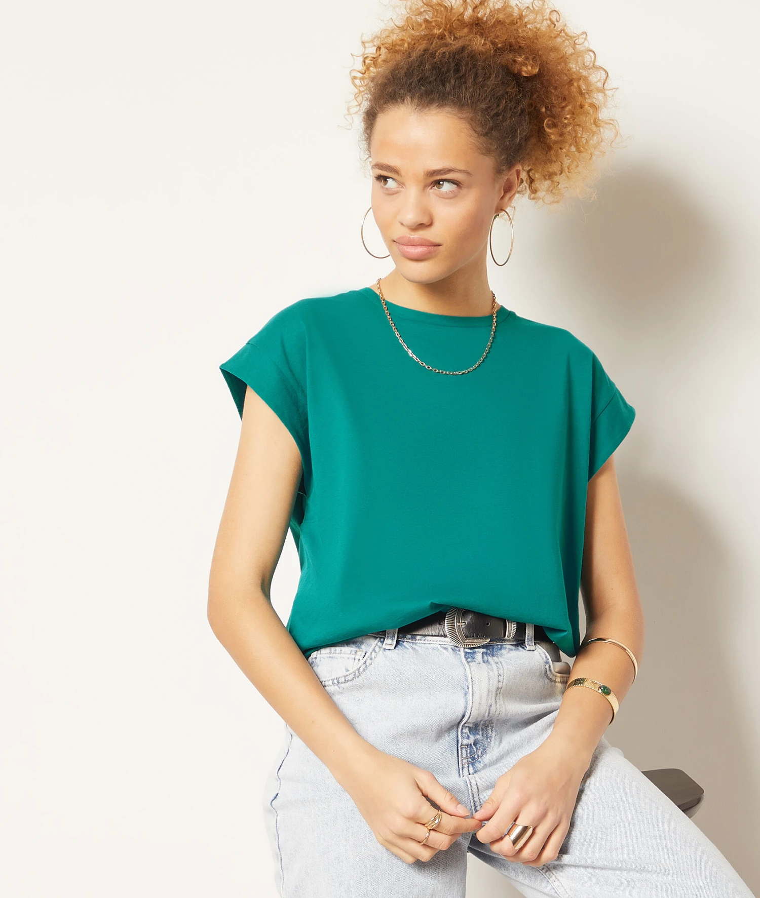 On ne peut que craquer pour cet essentiel. Indispensable de la garde-robe de mi-saison, ce t-shirt en coton dévoile un col rond et des manches courtes structurées pour un outfit alliant confort et style.
