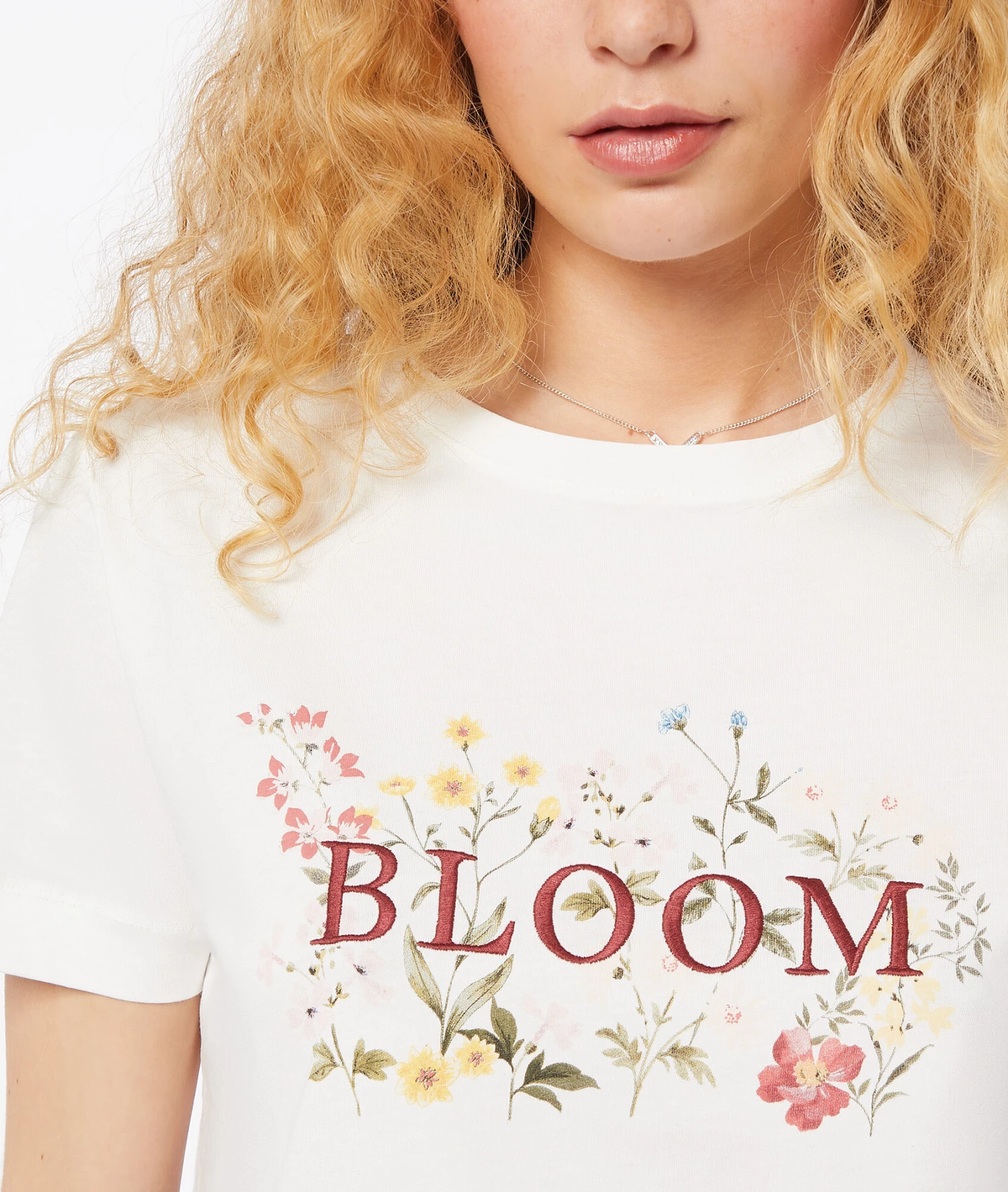 Le printemps s’invite sur ce t-shirt à col rond et manches courtes orné d’un imprimé Bloom. Sa matière légère s’adaptera parfaitement à la mi-saison.