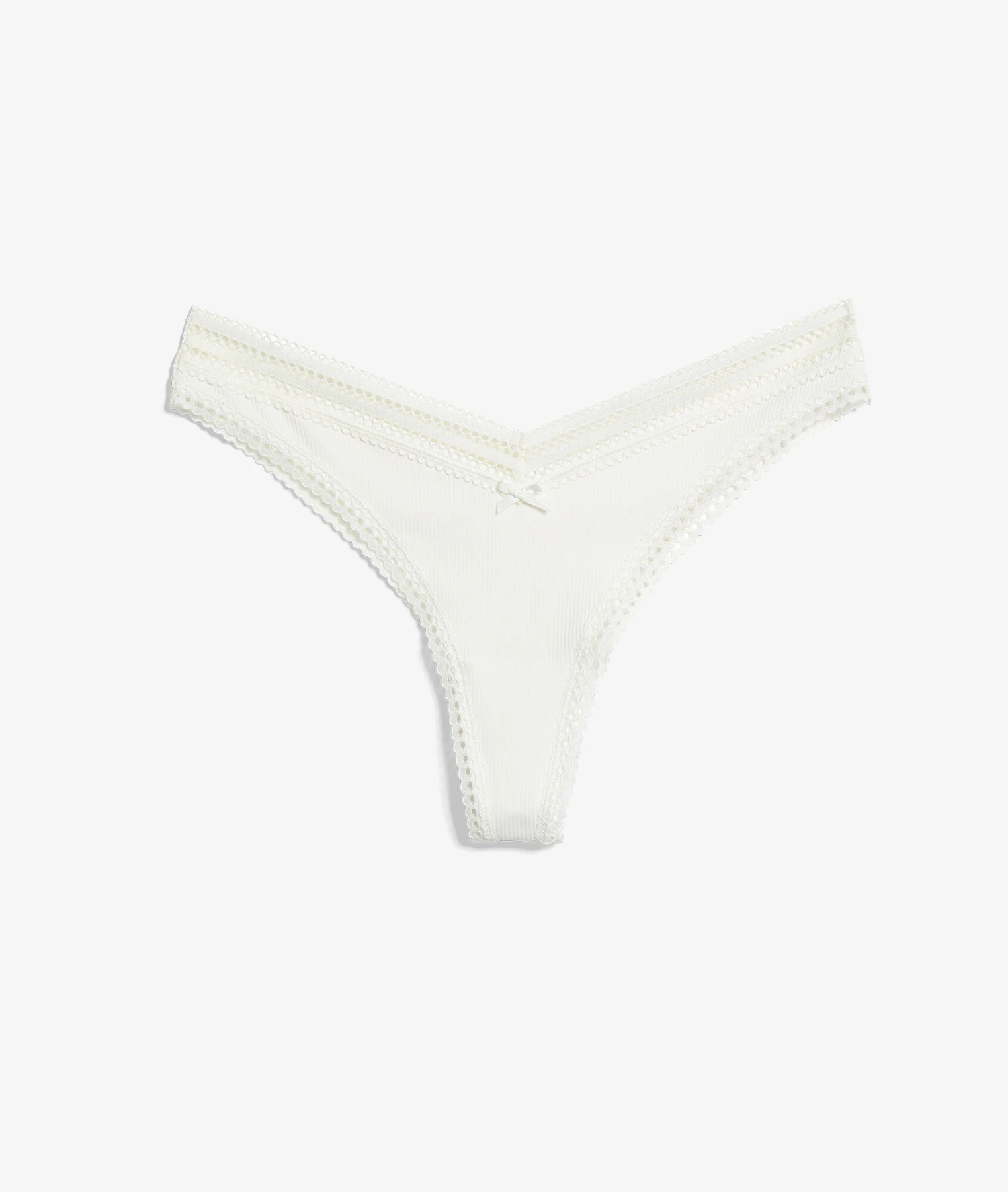 Un tanga échancré en V et délicatement bordé de dentelle : crush !