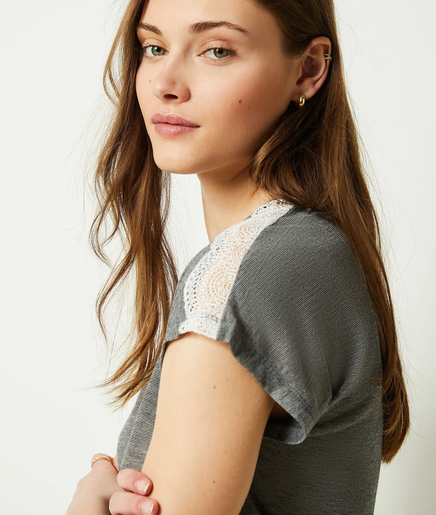 Un top de pyjama léger et ultra doux qui s’habille de bandes de dentelle aux épaules.