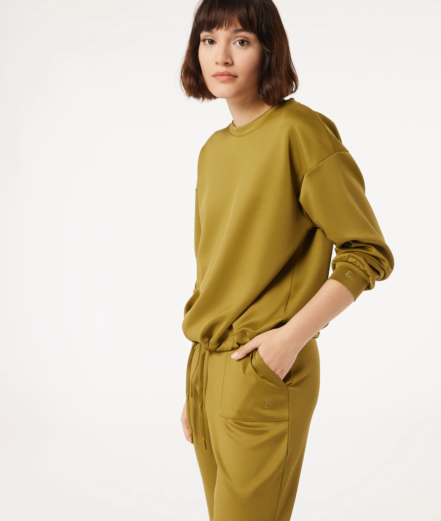 Vous êtes plus coupe droite ou resserrée ? Ce sweat shirt uni et légèrement oversize offre les deux possibilités grâce à son cordon de resserrage ultra-pratique. Il s’adopte aussi bien en mode cocooning que dehors pour un look comfy.