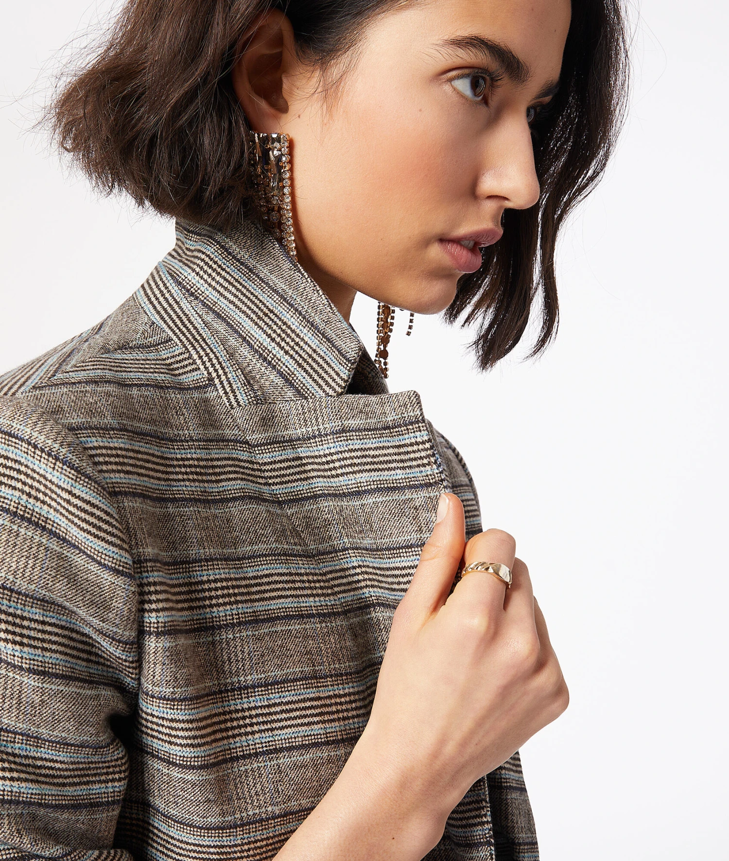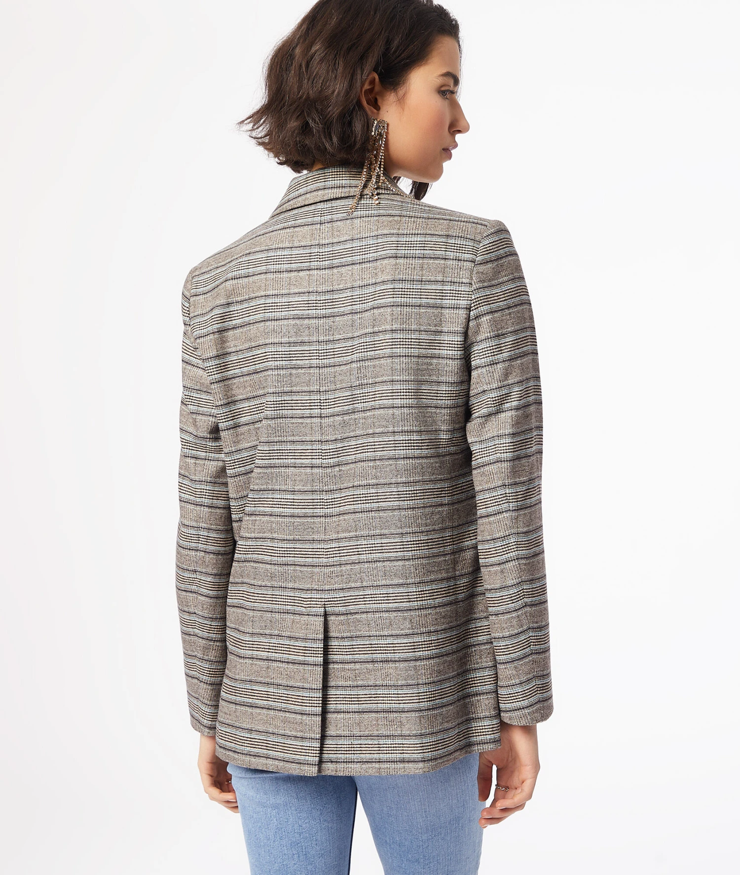 Motifs carreaux et forme oversize : structurez votre silhouette avec style dans cette veste blazer incontournable de la collection.