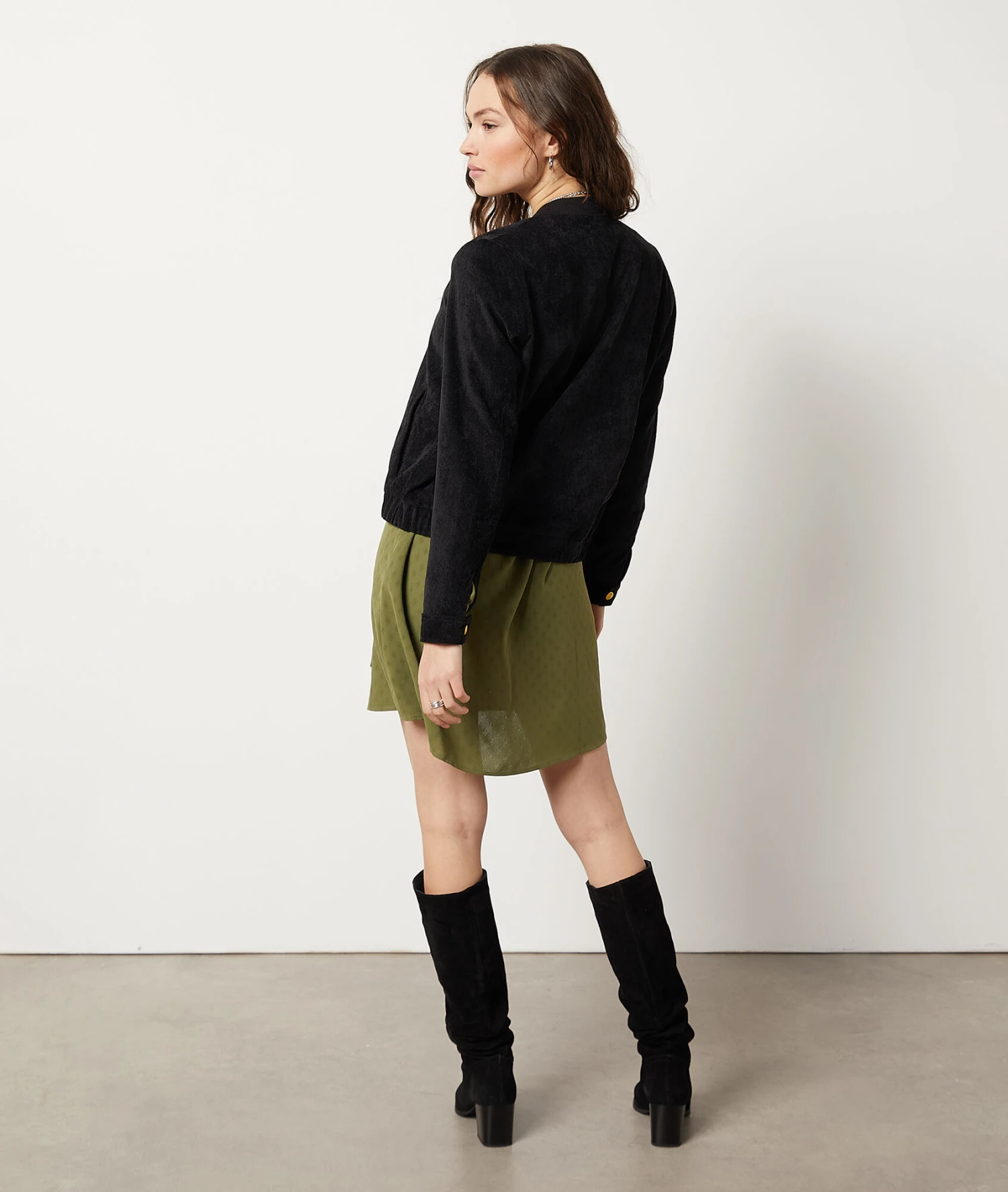 Le velours cotelé est de retour, sur une pièce iconique. Laissez-vous séduire par la douceur de ce bomber zippé muni de manches longues.